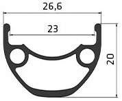 плетений колесо DSC 23 F колеса -це переднє колесо, призначене для стандартних виделків із дисковими гальмами та кріпленням для вилки з швидким -треком. Колесо має більш широкий ободок з внутрішньою шириною 23 мм і підходить для використання безбезаційних систем.
