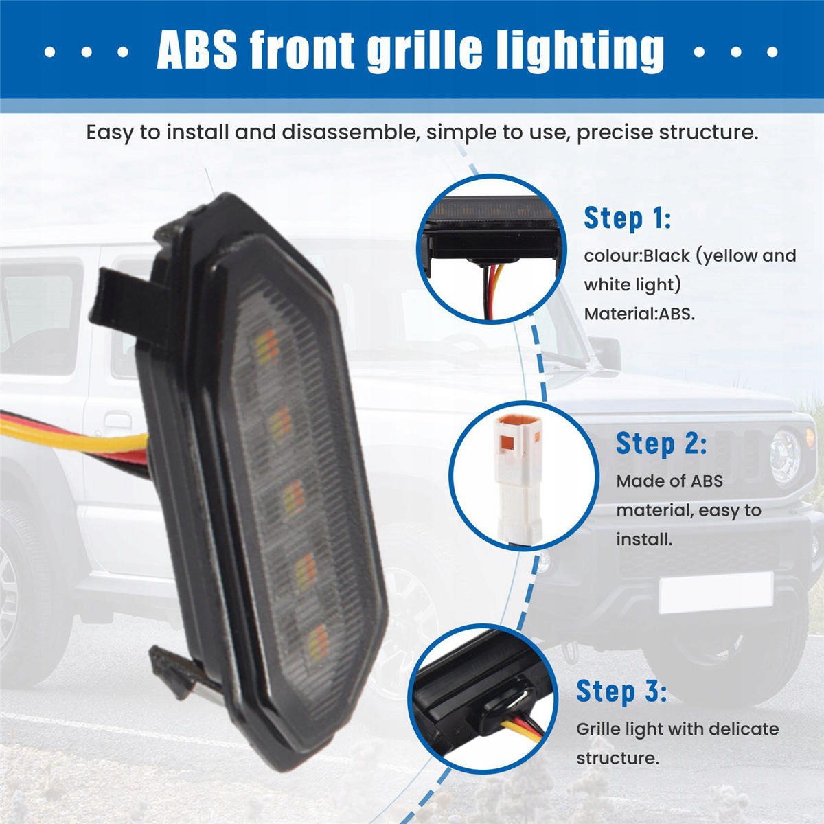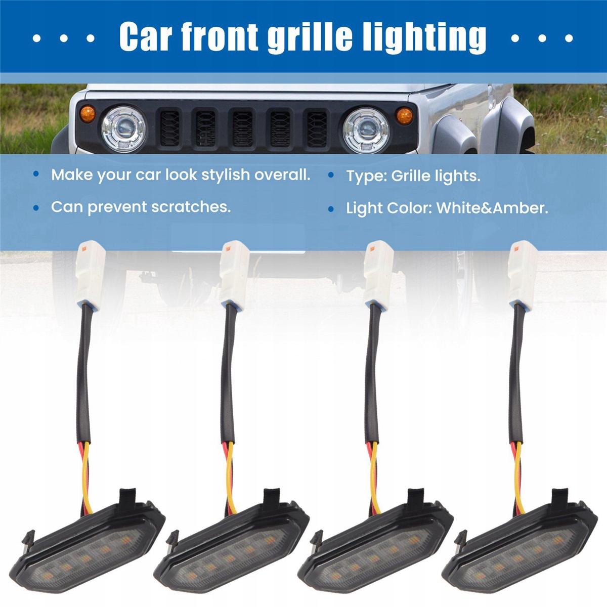 світлодіодні світильники переднього гриля, білого, бурштинового, зовнішнього гриль -ламп для Suzuki Jimny JB64 JB74 2019 2020 2021