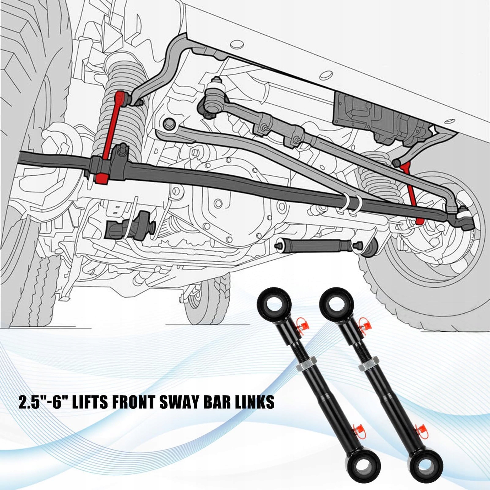 5. Регульована конструкція: Діапазон підйому від 2,5 до 6 дюймів означає, що дилататор стабілізатора підходить для більш широкого діапазону транспортних засобів, що збільшує стабільність та контроль транспортного засобу.