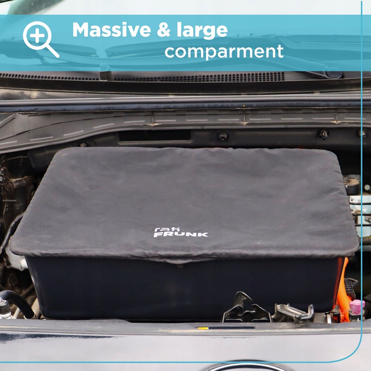 Frunk має гнучкий чохол, який ефективно захищає предмети, що зберігаються, від пошкоджень, бруду та зовнішнього середовища, підвищуючи його практичність і корисність для власників електромобілів.