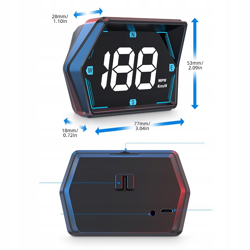 ✅ ✅ HUD Heads-Up Lepuler, який показує цифрову швидкість подорожі на власному HD-дисплеї. Елегантне та компактний корпус, який можна розмістити в будь -якому місці