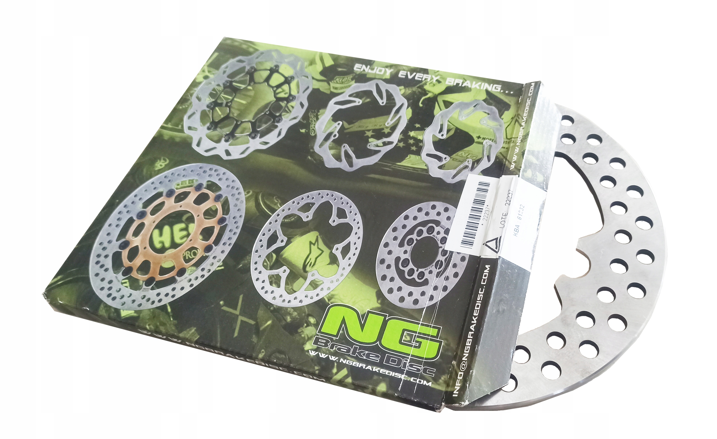 щит, зроблений заснованим у 1968 році. Іспанська компанія NG Brake Disc. Продукція, виготовлена цією компанією, користується великим визнанням завдяки дуже високій якості. Використання дуже високоякісних матеріалів та новітніх технологій виготовлення гальмівного диска NG є на передньому плані виробників гальмівних дисків. Він також співпрацює з багатьма виробниками мотоциклів, такими як Aprilia, Honda, Yamaha, Suzuki, Beta, Husqvarna та багатьох інших, які встановлюють NG Shields як оригінальні у своїх машинах.