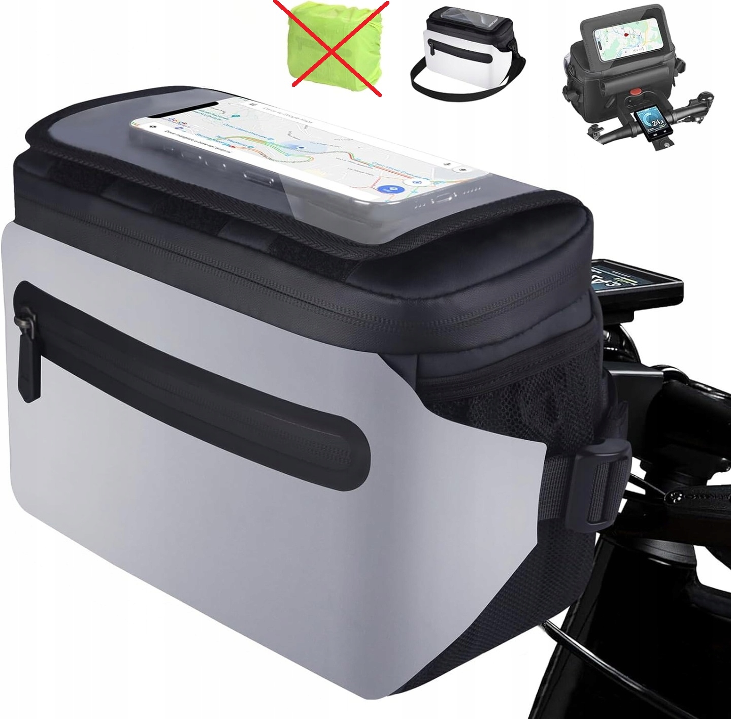 - Durable and waterproof material: The bicycle bag for the steering is made of durable, waterproof polyester and a sealed zipper, the bag is hard and does not deform, optimal protection against waste і волога. Завдяки прикріпленому дощовому покриву, ви можете легко їздити під дощем і повністю насолоджуватися велосипедною їздою
