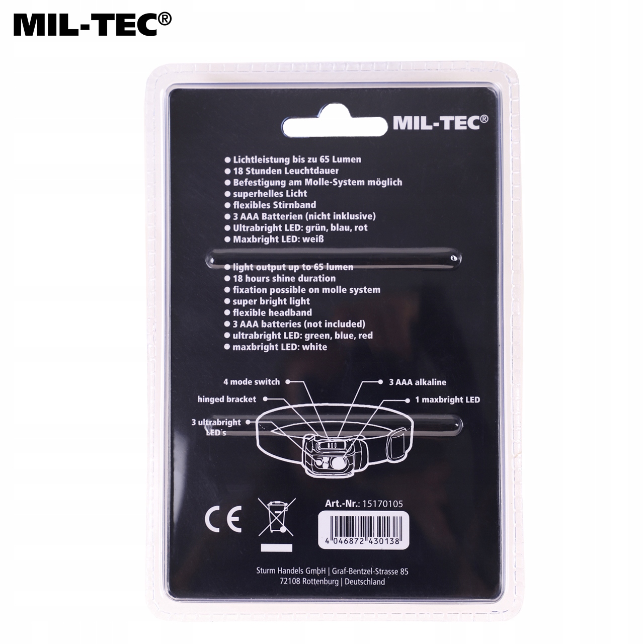 передній ліхтарик MIL-TEC LED 4 Колір :