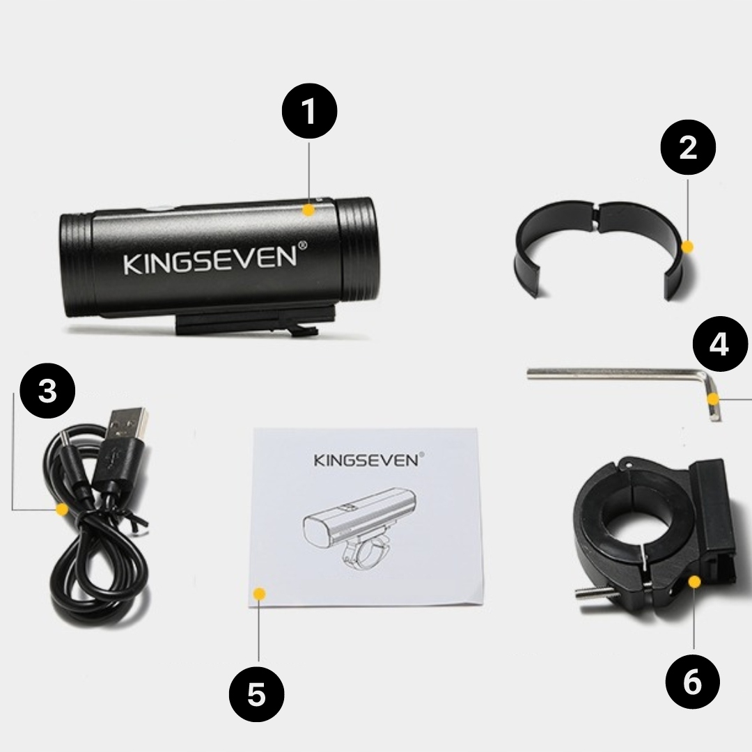 - Велосипедні ліхтарі, пропоновані брендом KINGSEVEN®, забезпечують комплексне освітлення та безпеку, яку ви можете легко гарантувати самі.