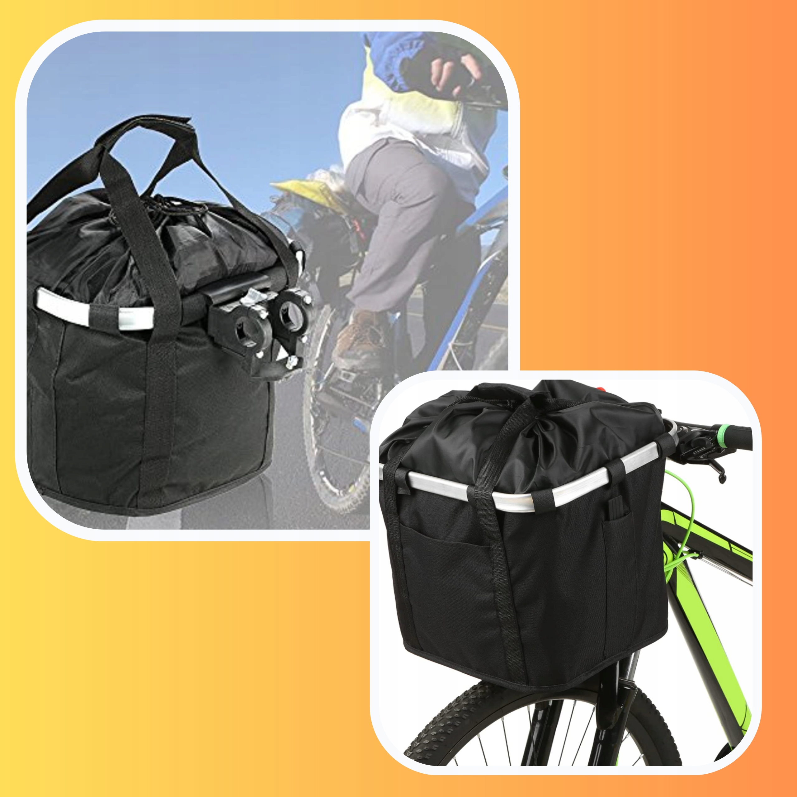 ⭐Кошик для велосипеда чорного кольору з ручка, можна використовувати як сумку або сумку. Його міцне виготовлення та функціональність роблять його ідеальним велосипедним аксесуаром для тих, хто цінує комфорт і практичність під час їзди.