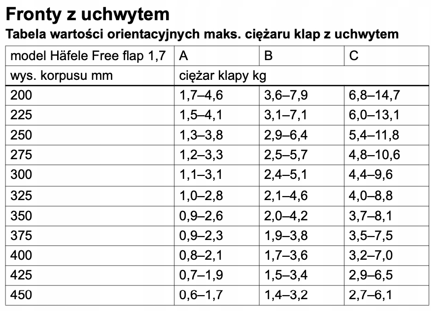 Підйомник може працювати як з цільними передніми частинами з ручками, так і без ручок (з системою відкривання натисканням).