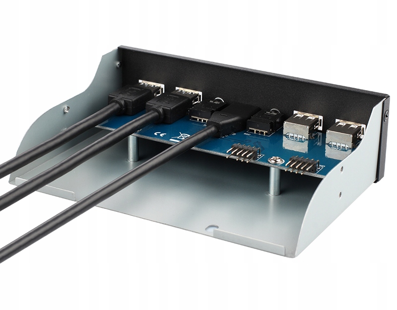 Передня панель із двома портами USB3.0, 2 портами USB2.0, портом USB-C і 2 портами аудіороз’єму 3,5 мм для користувачів, які мають материнські плати з портом USB-C типу E, внутрішнім USB і HD-Audio (материнська плата або звукова карта). Це дозволяє маршрутизувати порти, щоб було легше та зручніше підключати до них пристрої. Панель дозволяє розширити функціональність плати 4 додатковими портами USB, 1 портом USB-C і вільно підключати, наприклад, навушники та мікрофон до передньої панелі комп’ютера. Перевірте, чи материнська плата вашого комп’ютера має USB-C Type E і порт HD Audio, потім встановіть панель у вільне місце 5,25-дюймового оптичного приводу на передній панелі корпусу комп’ютера, підключіть кабель до USB- Роз'єм C Type E і внутрішній кабель USB в плату, материнську плату, а другий - в роз'єм HD Audio на материнській платі, і все готово. Два додаткових порти USB3.0, два порти USB2.0 і один порт USB-C дозволяють підключати до комп’ютера більше пристроїв. 2 роз’єми аудіороз’єму 3,5 мм дозволяють підключати до комп’ютера, наприклад, навушники, колонки, мікрофон.