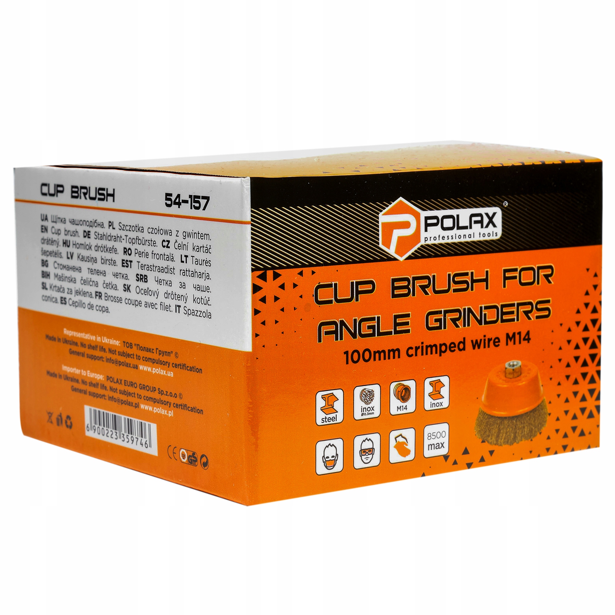 передня щітка Polax, що використовується з кутовими шліфувальними шліфтами для швидкого очищення металу та інших поверхонь та елементів із старих фарб, забруднюючих речовин, корозії, слідів природного старіння (патина), підшерстя. його можна використовувати як в домогосподарстві, так і в різних галузях для очищення пристроїв та механізмів.