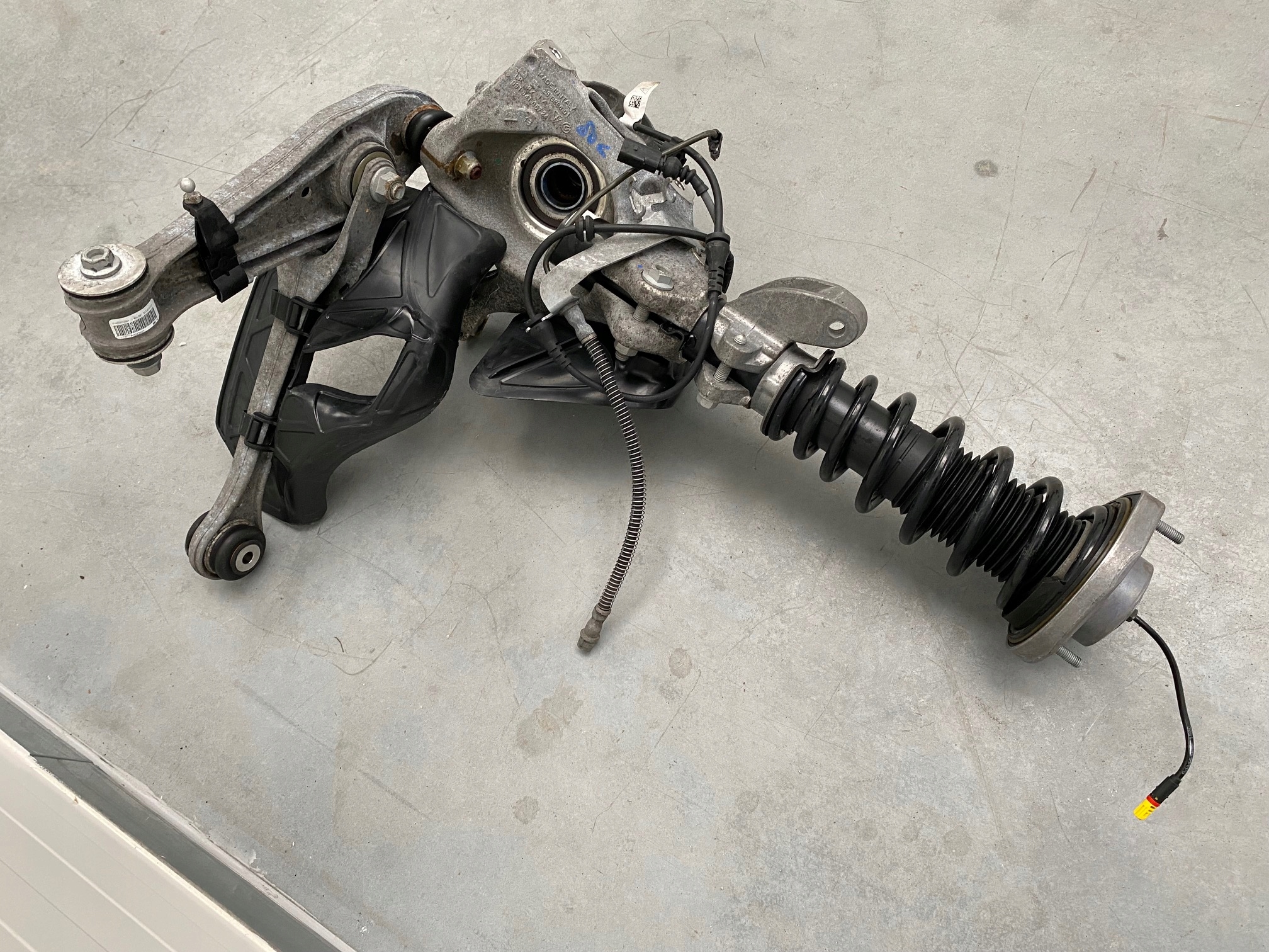 Тема аукціону - це оригінальна вживана ліва підвіска для автомобілів Porsche 911 991 4S перед турбо -версією та колесом для 1 гвинта. Підвіска знаходиться в дуже хорошому стані, 100% функціональна.