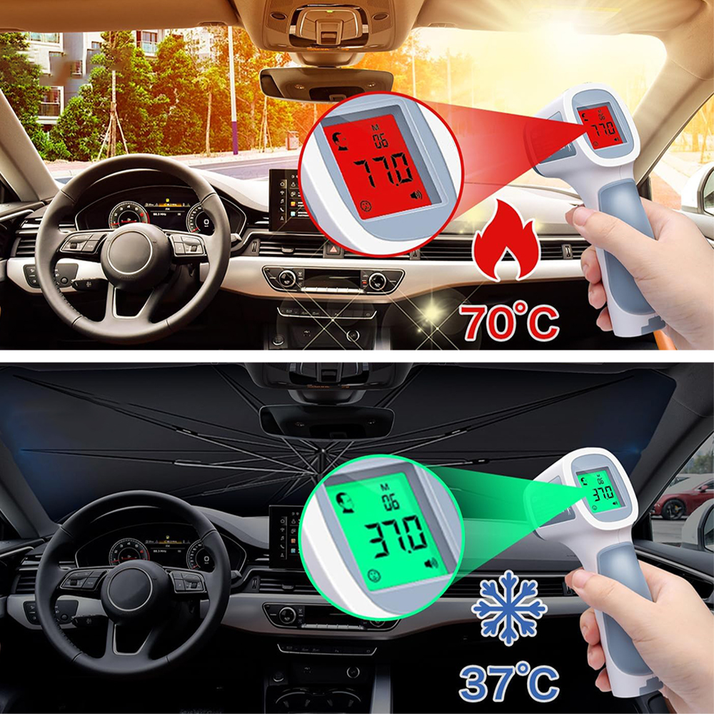- Зроблено з титанової тканини та срібла, забезпечує ефективну ізоляцію, зменшує пряме сонячне світло та тепло у внутрішній пошкодження, сприяє пошкодженню застуди і ефективно запобігає пошкодженню, спричинених заподіяних пошкодженнях. і зберігати в прикріпленому шкіряному корпусі, що полегшує перенесення.