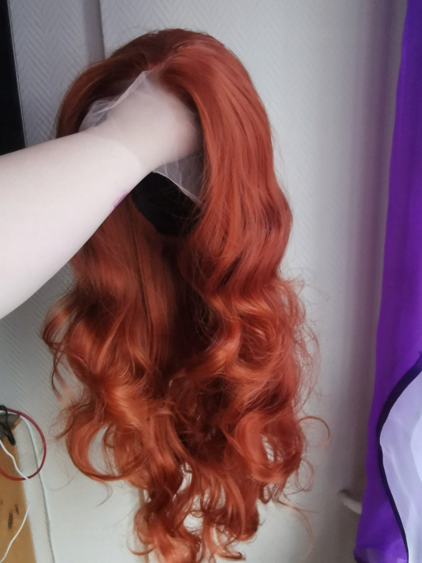 Нові, спочатку упаковані, носили, прекрасну, мереживну перуку в кольорі темного, іржавого коричневого/почервоніння