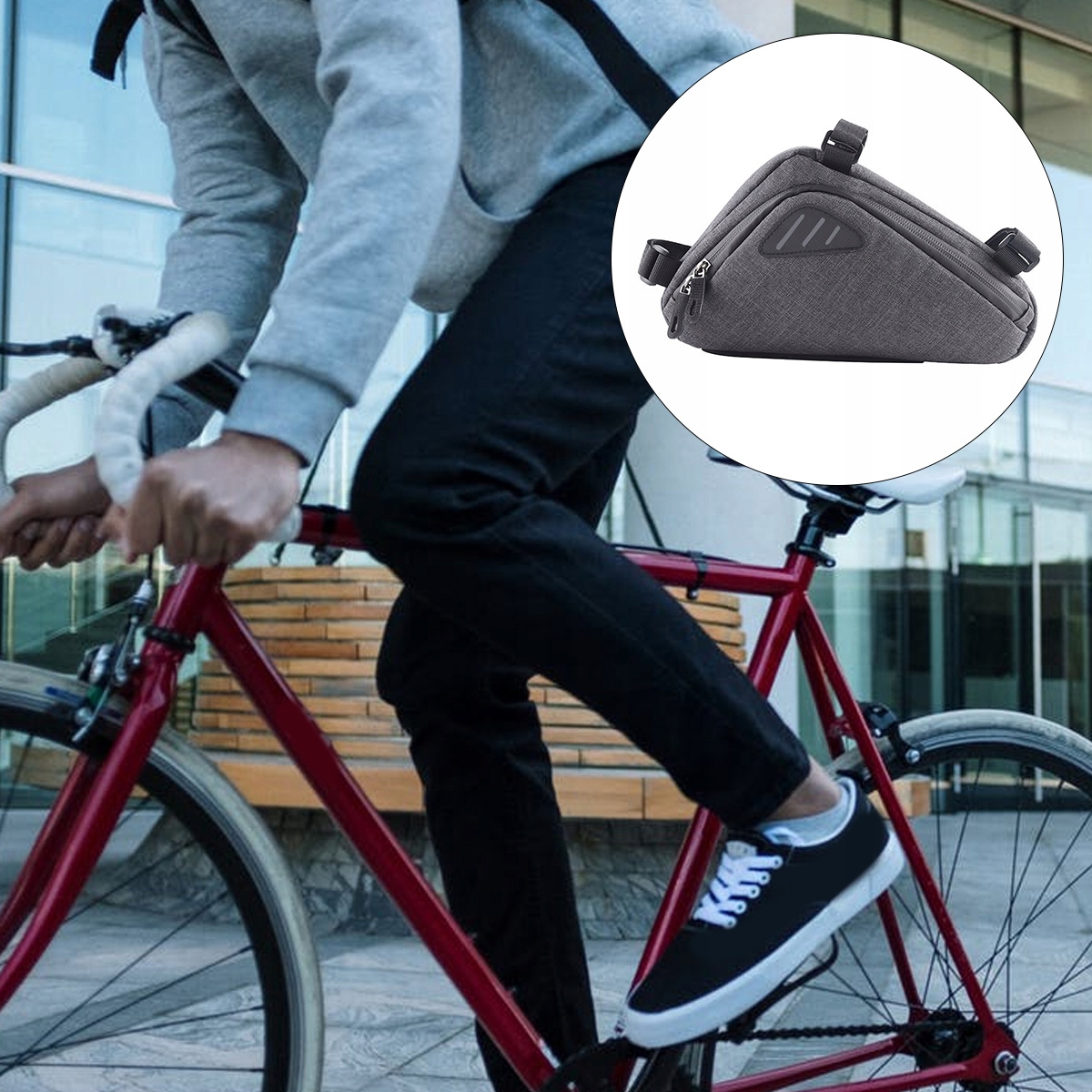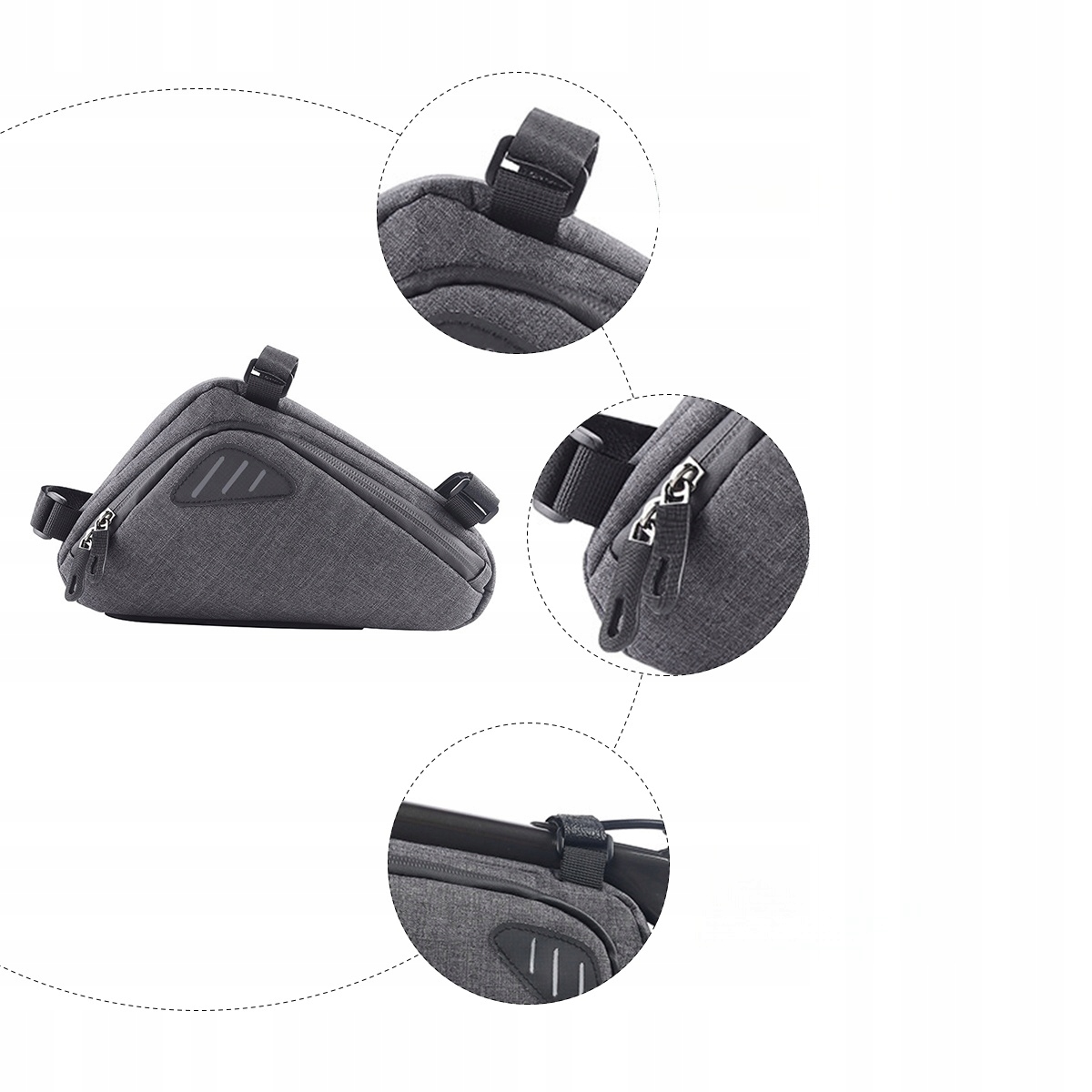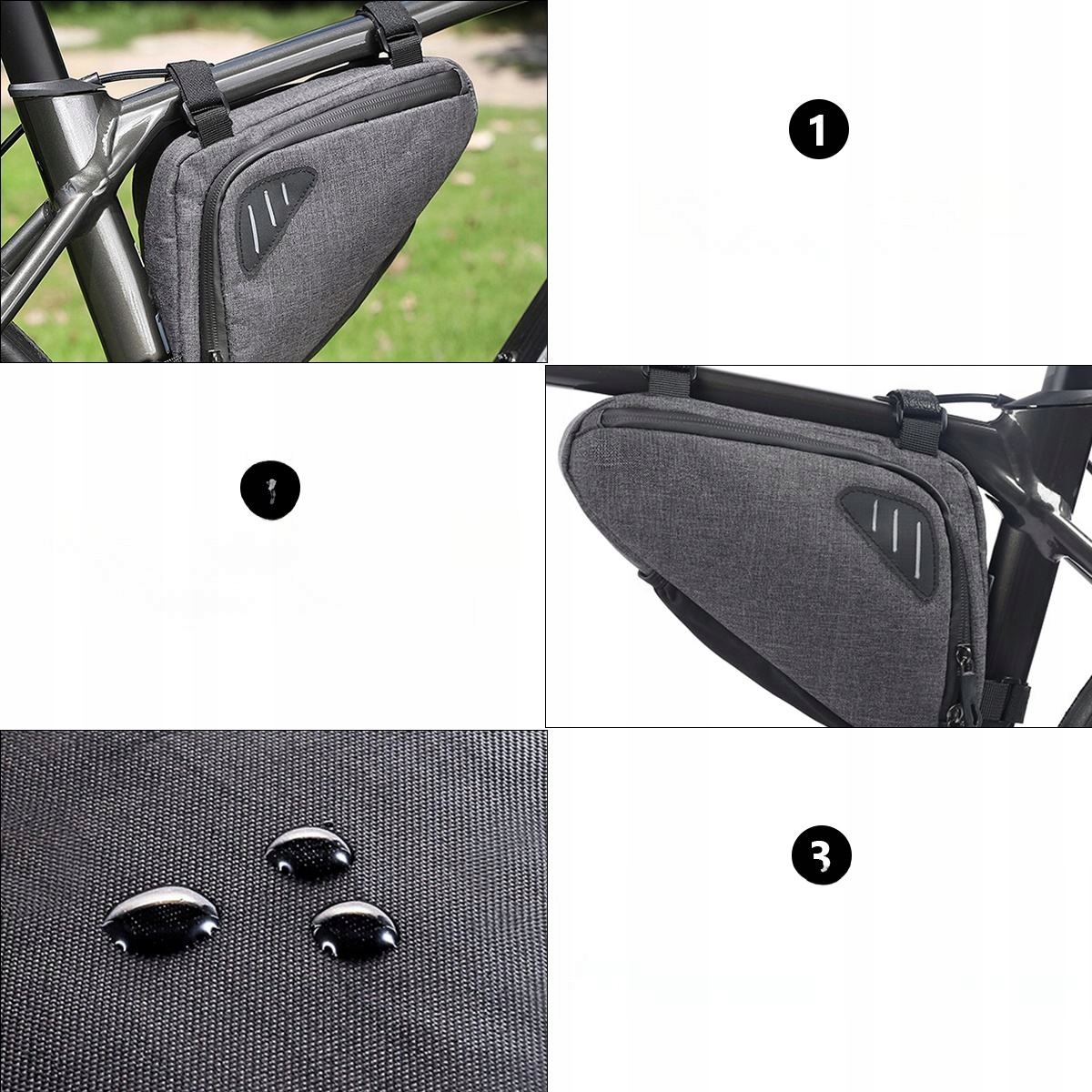 ✅Це велосипедна сумка, виготовлена з нейлону для міцного та практичного використання. Підходить для різних типів велосипедів, складних велосипедів, шосейних велосипедів, гірських велосипедів і так далі. З блискавкою для легкого відкривання та закривання. Підходить для зберігання щоденних речей, таких як гаманець, мобільний телефон, рушник, косметика тощо.