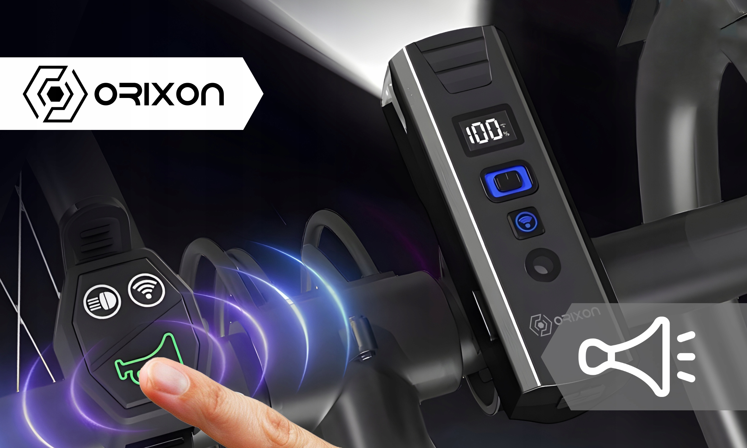 Керування здійснюється за допомогою зручного пульта дистанційного керування, який можна прикріпити безпосередньо до керма. У вас під рукою як гудок, так і повний контроль над освітленням - ви можете змінювати режими освітлення та попереджати інших учасників дорожнього руху одним клацанням.