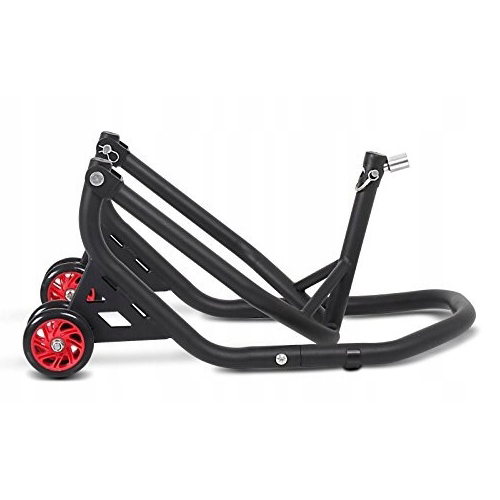 Міцна та практична підставка на переднє колесо. Його використання істотно полегшує всю сервісну діяльність. Добре побудований і збалансований. Має практичні подвійні колеса з прогумованим протектором.