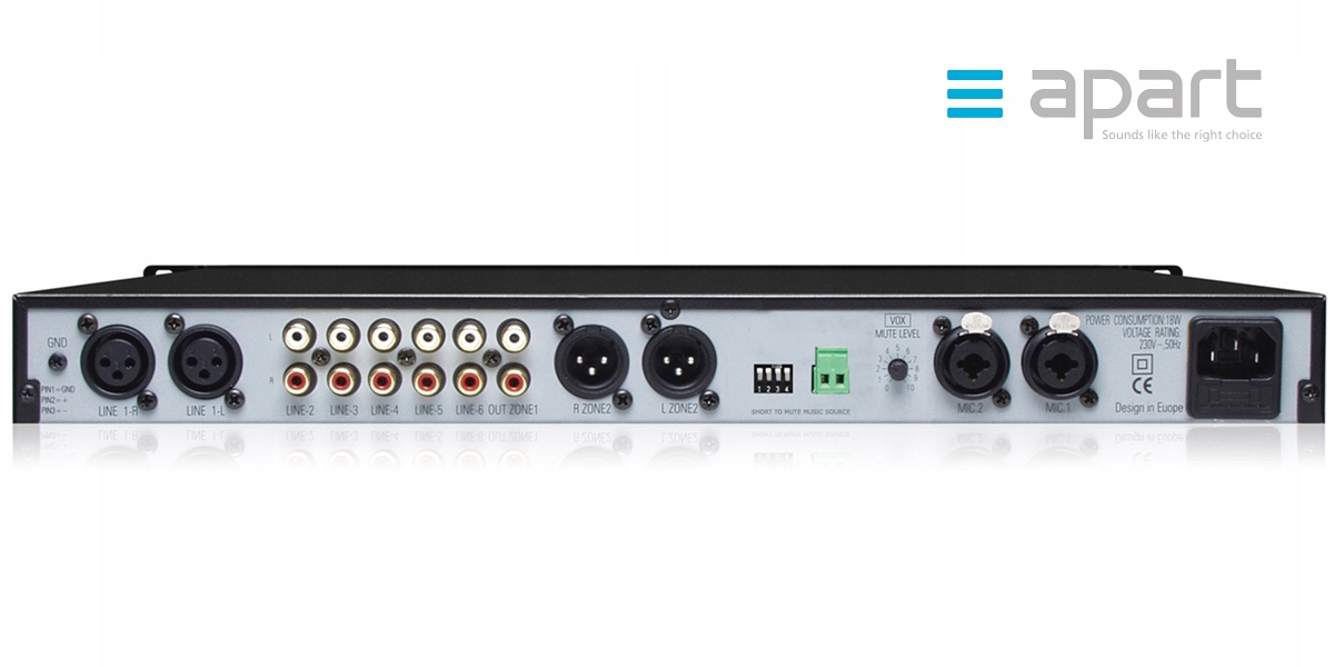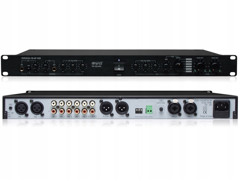 Стерео попередній підсилювач, що дозволяє незалежне регулювання гучності в двох зонах з можливістю мікшування звуку джерело з мікрофонним сигналом, ідеально підходить для клубів, барів і ресторанів.