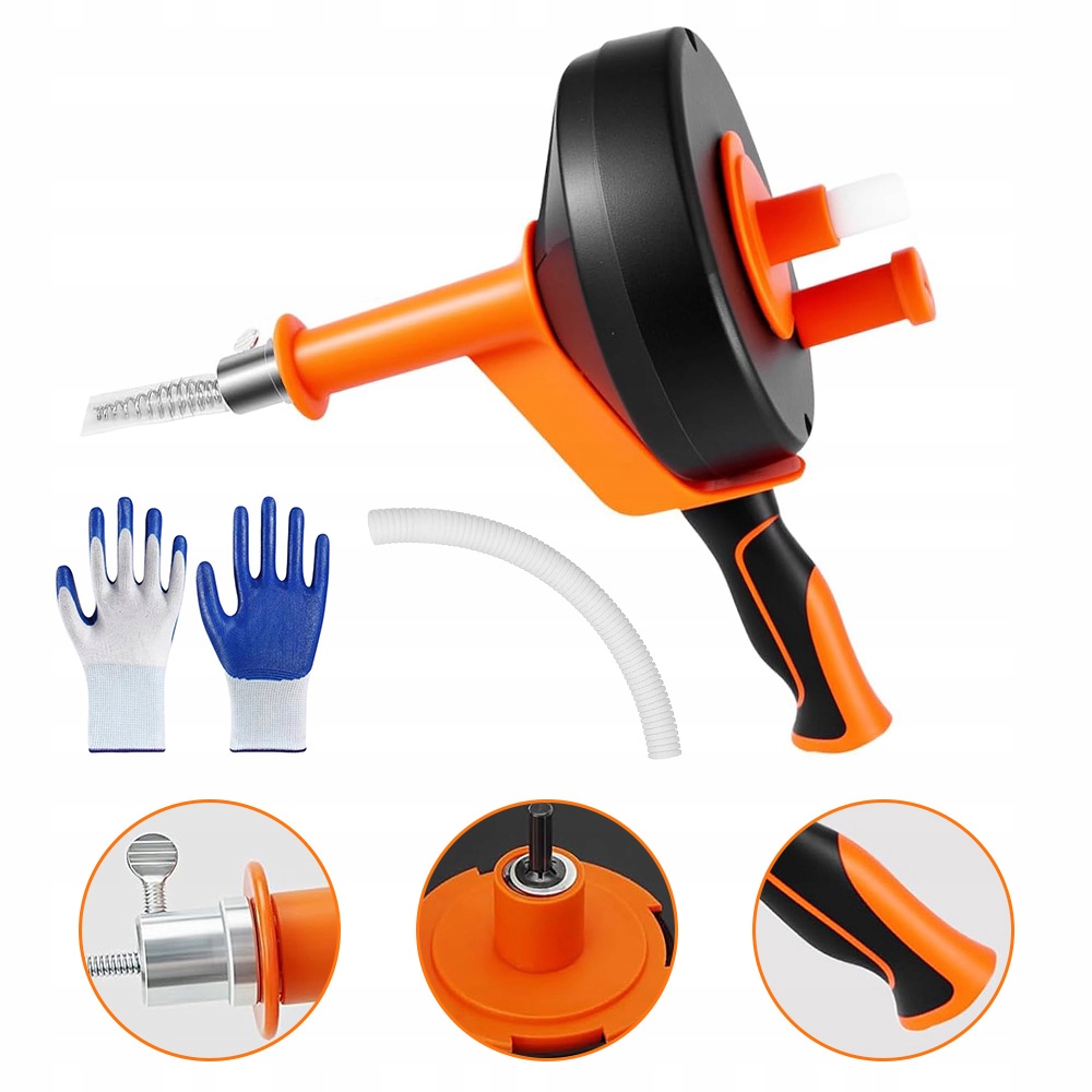 ☀️☀️ Попрощайтеся з проблемними та дорогими закупорками у ваших трубах! Наша професійна барабанна каналізаційна спіраль із вражаючою довжиною 7,6 метрів є надійним рішенням для кожного дому. Розроблений для видалення навіть найстійкіших засмічень, викликаних волоссям, жиром або залишками мила, він легко дістанеться до джерела проблеми в кухонній раковині, умивальнику, ванні або зливі в підлозі. Завдяки подвійному режиму роботи - ручному та електричному - ви повністю контролюєте процес очищення, регулюючи силу відповідно до масштабу засмічення.