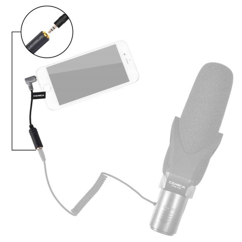 Універсальний і практичний адаптер COMICA CVM-SPX, який перетворює порт 3-pin mini jack 3,5 мм TRS на штекер 4-pin mini jack 3,5 мм TRRS, який використовується, зокрема, у смартфонах, планшетах, ноутбуках і комп’ютерах із комбінованим портом для навушників і мікрофона. Адаптер передає живлення між пристроями та може використовуватися з усіма типами мікрофонів, навіть з тими, які не мають власної батареї.