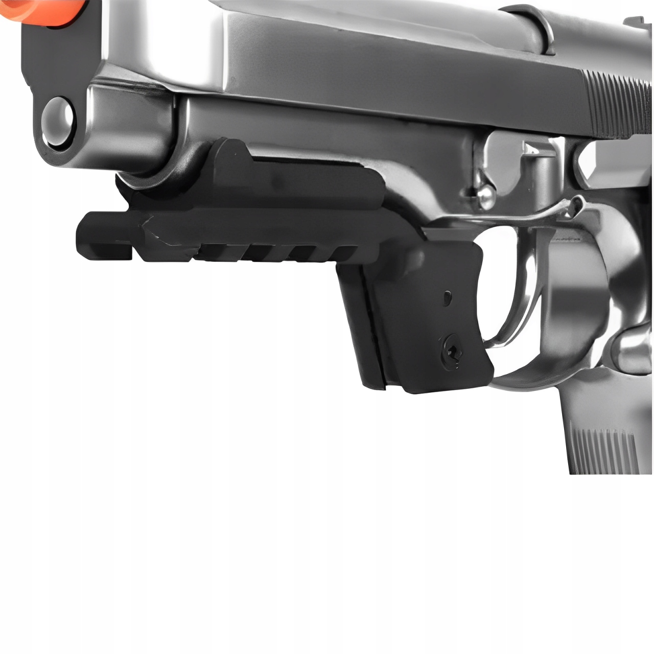 - Стандартна 20-міліметрова рейка: Використовуючи стандартний 20-мм рейковий інтерфейс, його можна широко адаптувати до різноманітних тактичних лазерних ліхтарів, тактичних ліхтарів, червоних лазерних указок та інших аксесуари тактичний, надаючи додаткові тактичні функції для пістолета M9.
