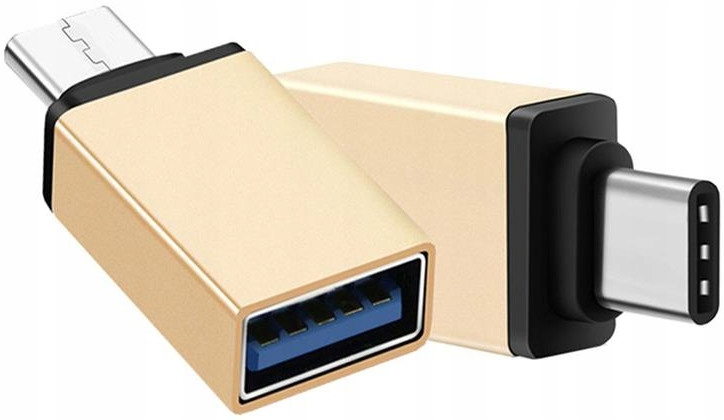 Перехідник маленький золотистий OTG microUSB типу C на USB 3.0