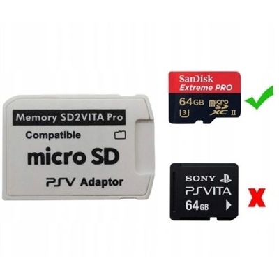 Адаптер SD2Vita v.5.0 конвертує карти MicroSD у формат ігор PS Vita. Він сумісний з консолями CFW (Henkaku). За допомогою адаптера ви можете отримати доступ до вмісту, що зберігається на картці MicroSD, через ігровий порт консолей PS Vita. Адаптер підтримується всіма моделями PS Vita (Fat і Slim) із встановленим програмним забезпеченням версії 3.60 від CFW (Henkaku). Адаптер не впливає на швидкість читання/запису даних з карти microSD. Передача даних залежить від використовуваної карти пам'яті (до 90 МБ/с). Використовуємо перехідник через ігровий слот в консолі PS Vita. Підтримка карт MicroSD до 256 ГБ.