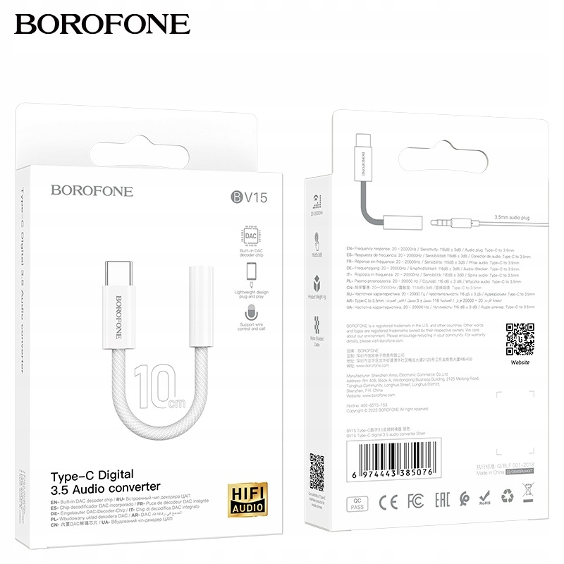 BOROFONE BV15 Type-C 3.5mm це цифровий аудіоадаптер / конвертер / адаптер з роз'ємом 3.5mm AUX Jack і USB Type-C / Type C / Type C, призначений для підключення кабельних навушників з аудіороз'ємом 3.5mm Jack, з підтримкою мікрофона і дистанційним керуванням з управлінням музикою і дзвінками для мобільних пристроїв без навушників jack.