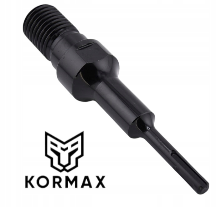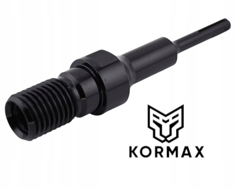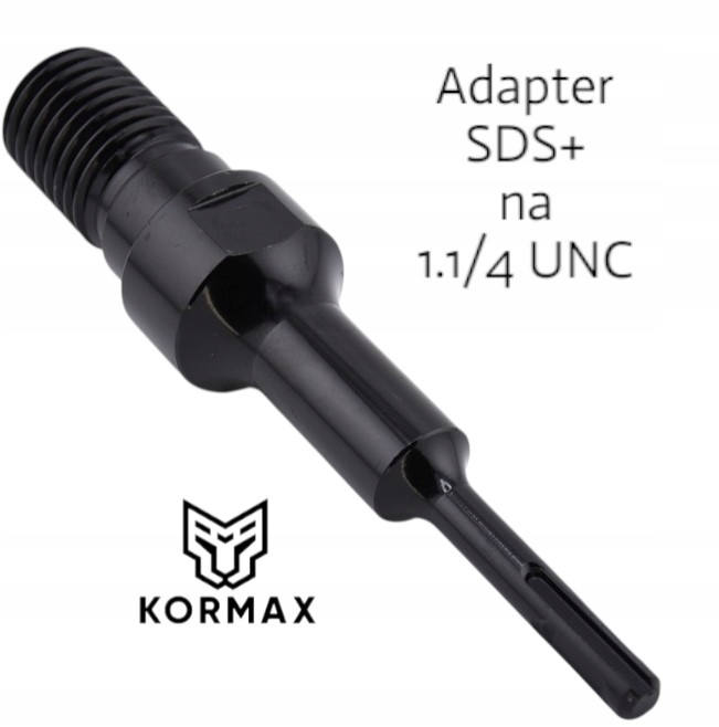 Професійний перехідник Kormax (A-SDSPLUS-1.1/4), виготовлений з високоякісної сталі, призначений для кріплення алмазних кольцевих пилок з різьбою 1¼″ UNC в свердла SDSPlus.