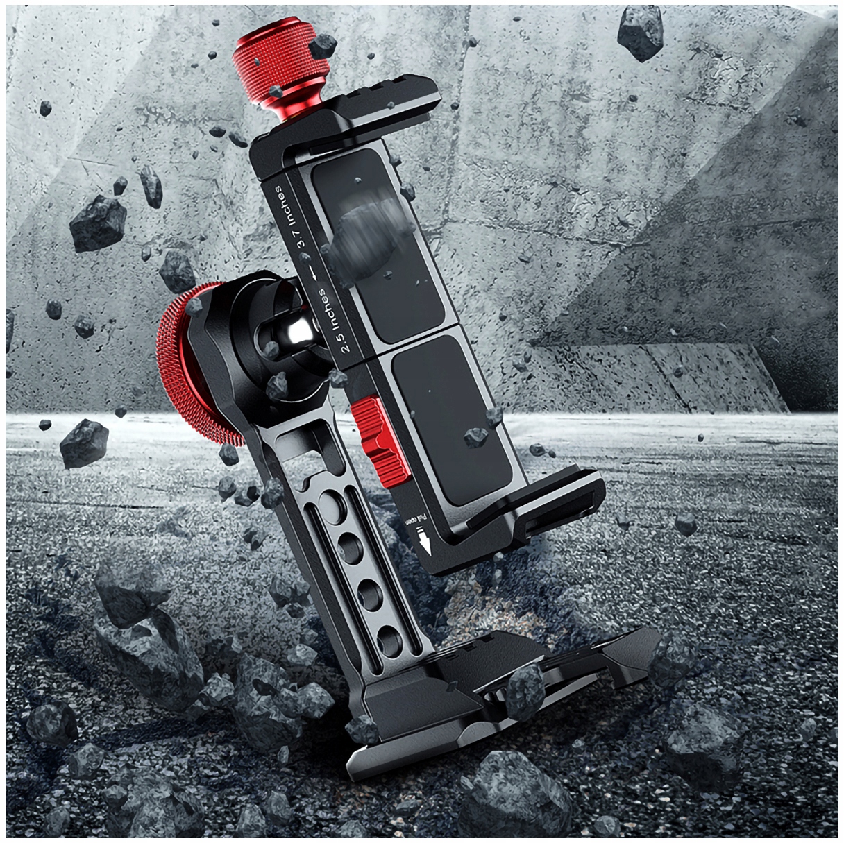 Тримач має 4 роз’єми для стандартної різьби 1/4 дюйма (1 знизу та 3 ззаду) та один роз’єм холодного башмака.