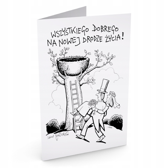 ВЕСІЛЬНА ВІТАЛЬНА ЛИСТІВКА З КОНВЕРТОМ-ГНІЗДОМ З МАЛЮНКОМ АНДРЖЕЯ МЛЕЧКИ