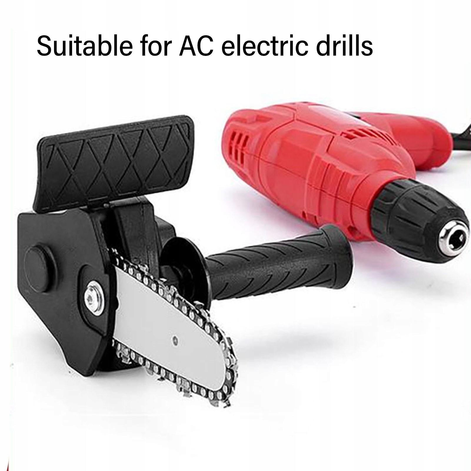 5. Висока сумісність: Інструмент для модифікації електричної ланцюгової пилки — це універсальний інструмент, який дозволяє перетворити вашу електродриль на бензопилу. Адаптер сумісний із більшістю електричних дрилів і може використовуватися для різноманітних робіт з різання деревини.