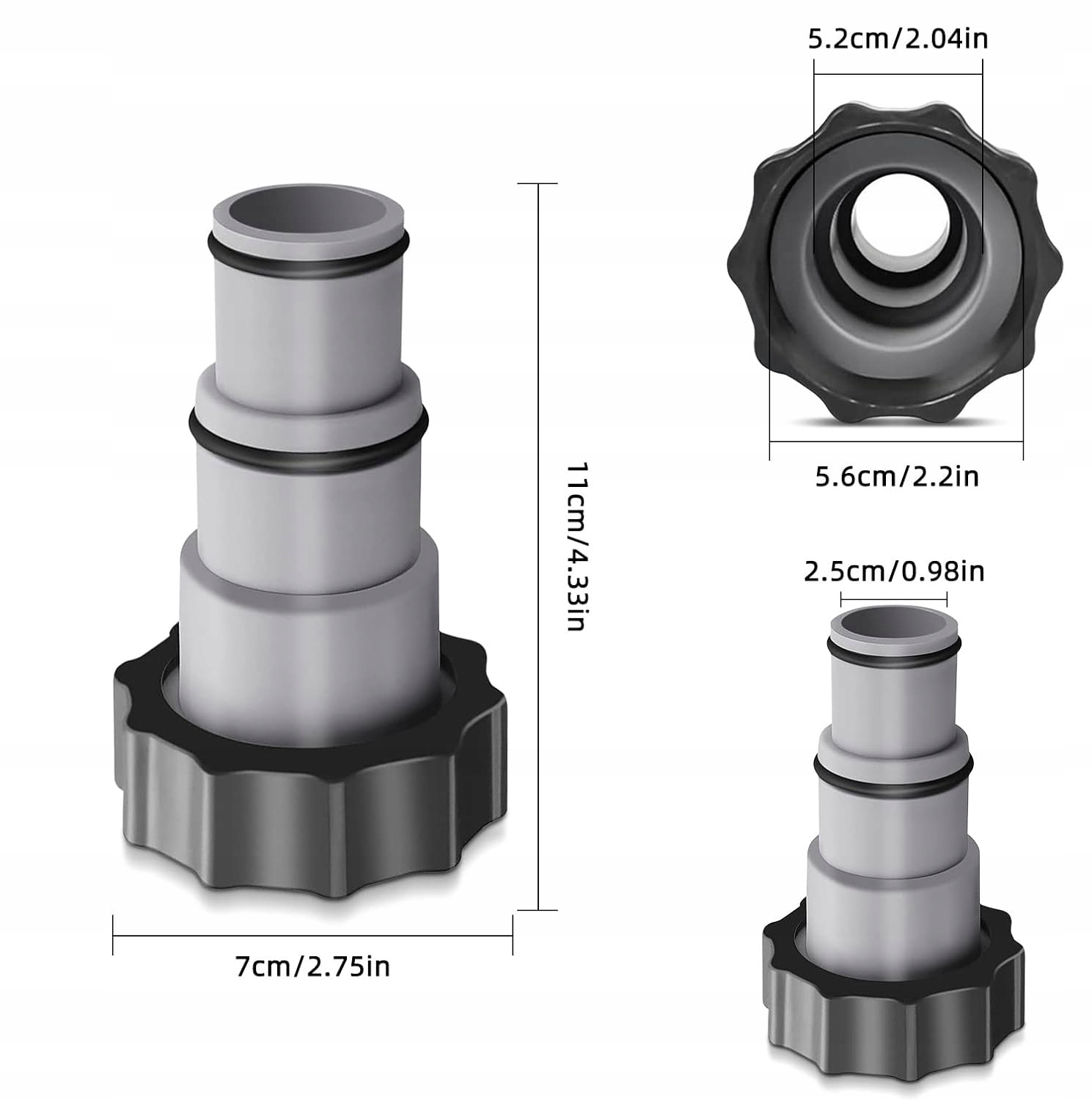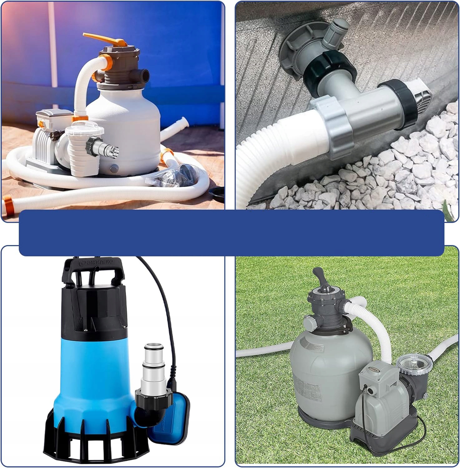 Адаптери для шлангів A призначені для підключення шлангів діаметром 1,25 дюйма до поршневих клапанів або фільтруючого насоса. Малий кінець можна підключити до шланга діаметром 1,25 дюйма. Різьбовий кінець можна приєднати до 1,5-дюймових поршневих клапанів або фільтруючих насосів, просто прикрутіть. Немає необхідності купувати шланги інших розмірів, уникнути додаткових витрат.