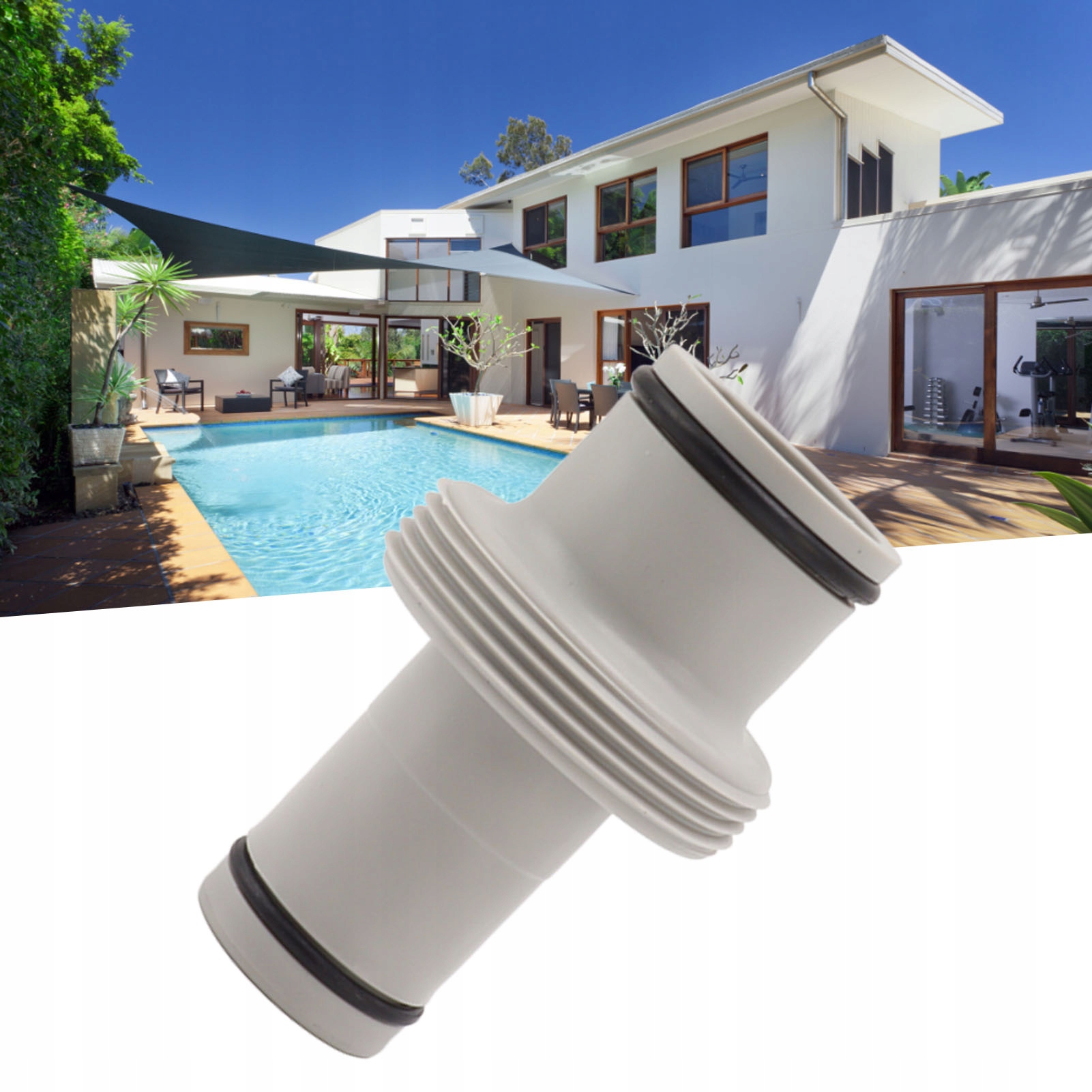 5. Арматура для басейну: адаптер шланга для поверхневих басейнів, прямий з’єднувач від 1,5 дюйма до 1,25 дюйма. Використання цього елемента забезпечить безпеку і правильну роботу басейну.