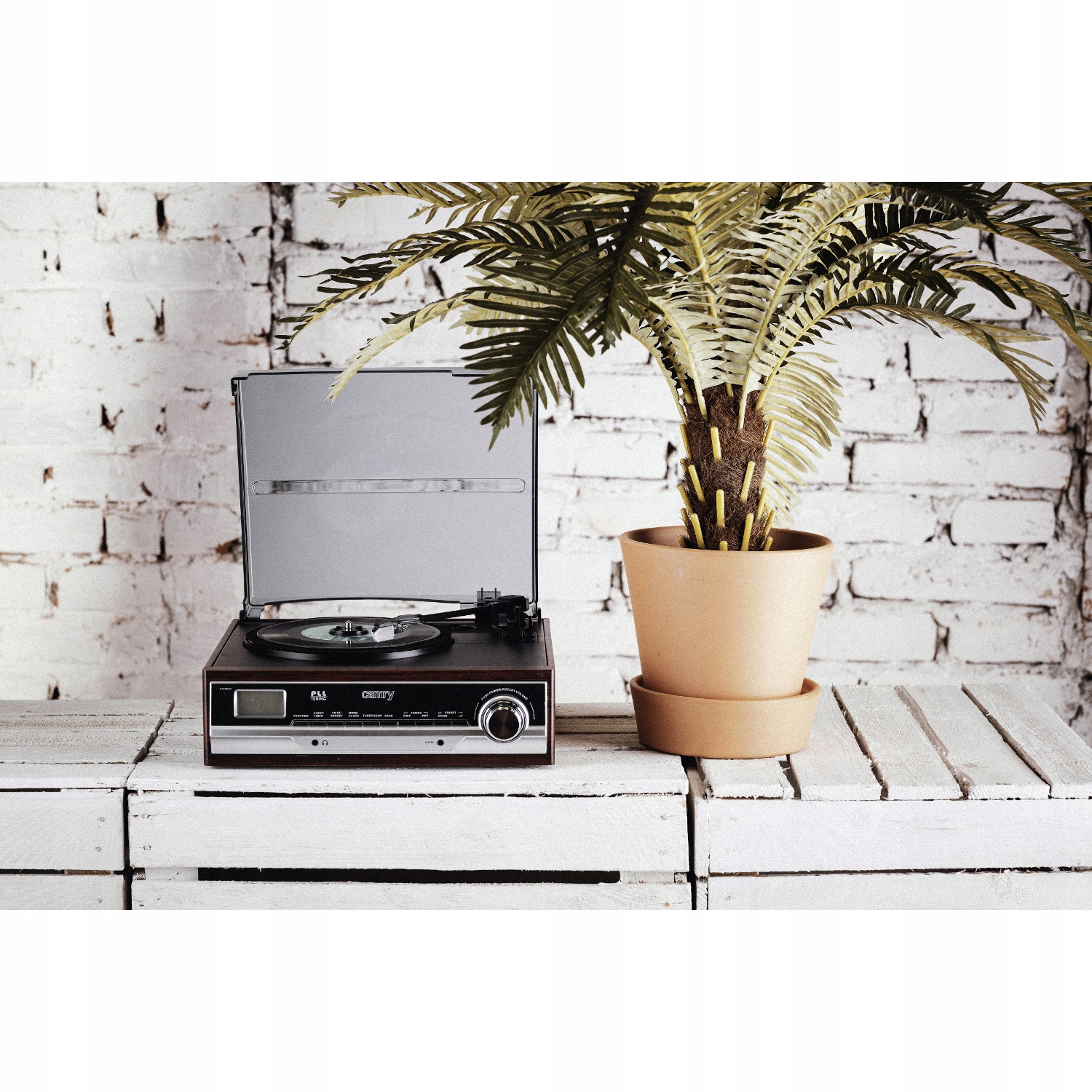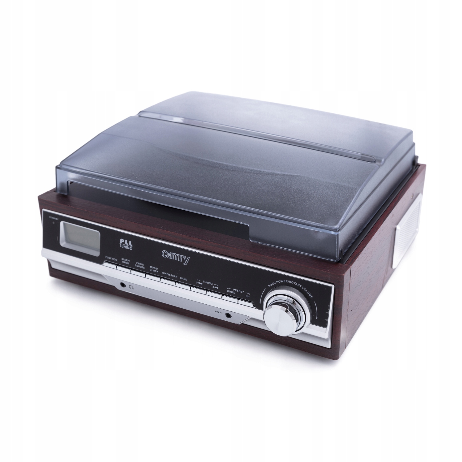 Поєднання класичного механізму з сучасною електронікою в одній моделі дає вам набагато більше можливостей, ніж мати програвач і радіо окремо, а також економить простір. Програвач Camry має два динаміки загальною музичною потужністю 3 Вт (1,5 Вт кожен). Якщо ви хочете розширити його, ви можете легко підключити зовнішні динаміки через вихід AUX.