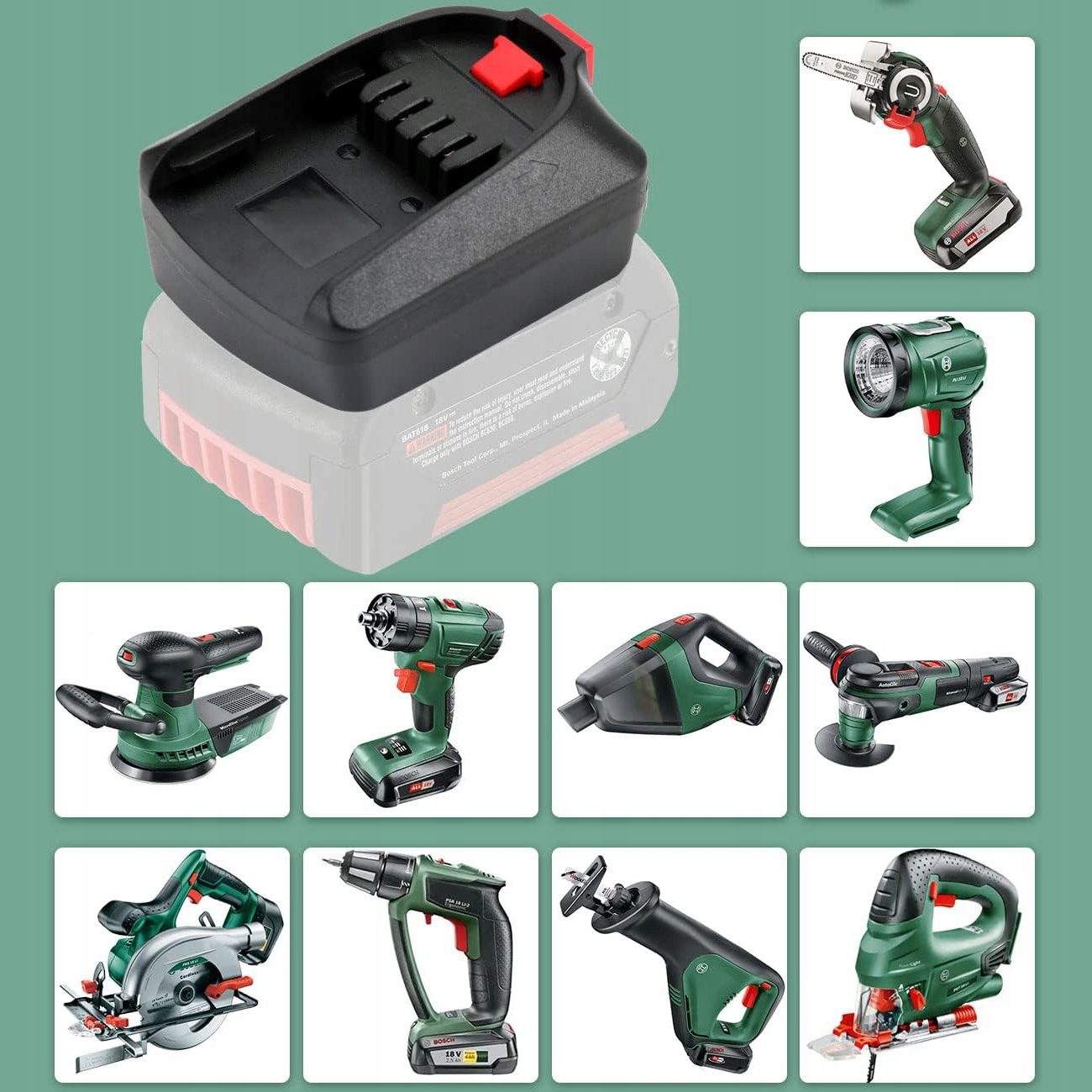 Адаптер для: літієвої батареї Bosch 18 В, BAT607, BAT614, BAT614G, BAT622, BAT609, BAT618G, BAT609G, BAT618 тощо.