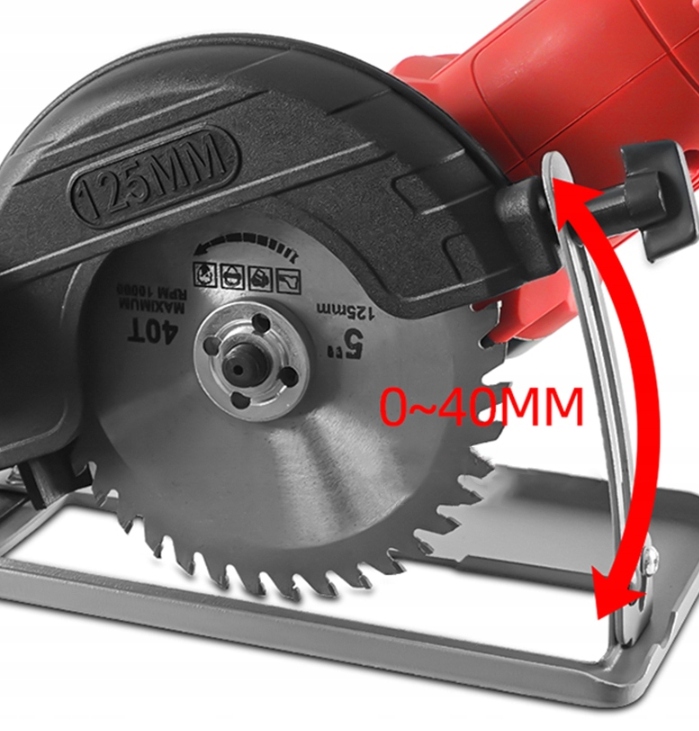 - Регульована глибина різання: Насадка дозволяє точно регулювати глибину різання в діапазоні від0 до 40 мм. Це дозволяє контролювати, наскільки глибоко ріжучий інструмент проникає в матеріал.