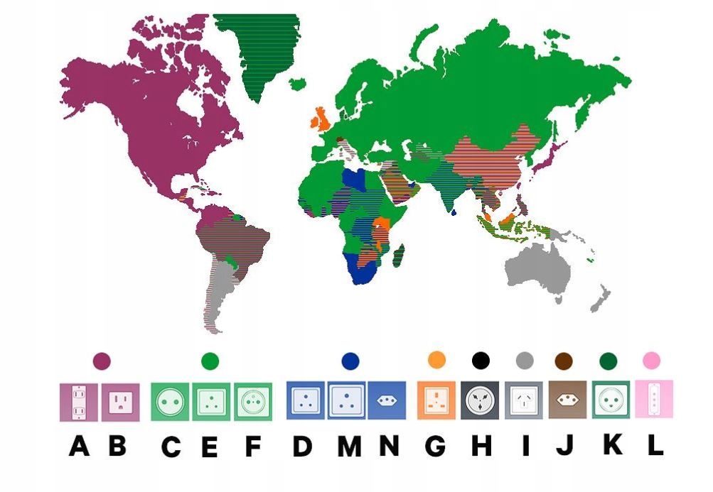 - Цей універсальний адаптер дозволяє використовувати пристрої з кабелями, закінченими іноземними та польськими штекерами, щоб ви можна підключити його до електричної розетки, доступної в певній країні.