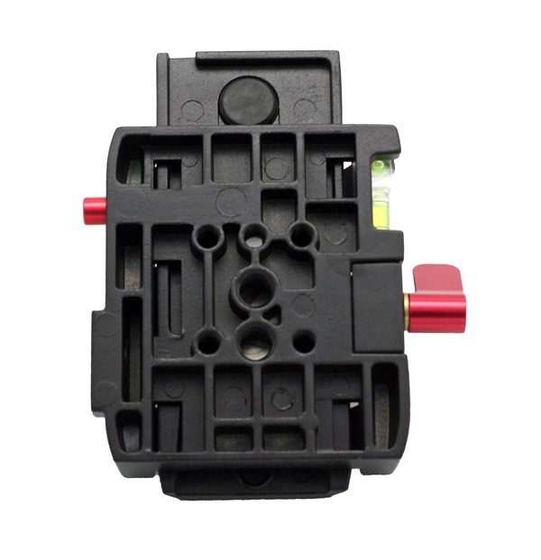 Адаптер має два різьбові монтажні отвори 1/4" і 3/8" і чотири симетрично розподілені отвори без різьби. Він також оснащений замком для запобігання вислизанню та двома рівнями.