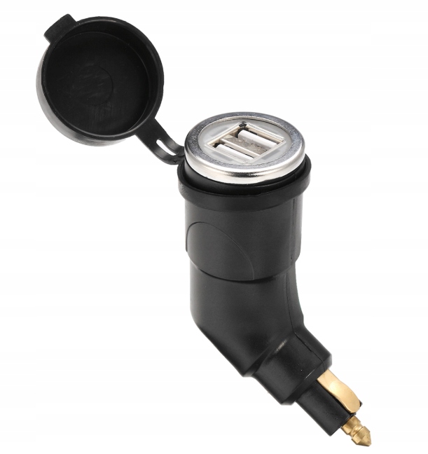 Трохи менший за стандартні автомобільні зарядні пристрої від прикурювача, цей мотоциклетний штекер підходить для мотоциклетних розеток DIN або BMW, має подвійний USB-порт для заряджання більшості мобільних пристроїв, таких як мобільний телефон, фотоапарат, GPS, PM3, PSP тощо.