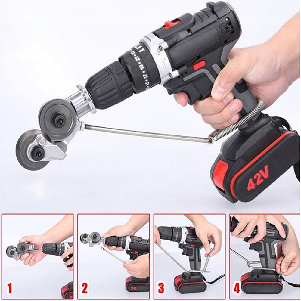 - Насадка для різання листового металу підходить майже для всіх стандартних електричних дрилів!