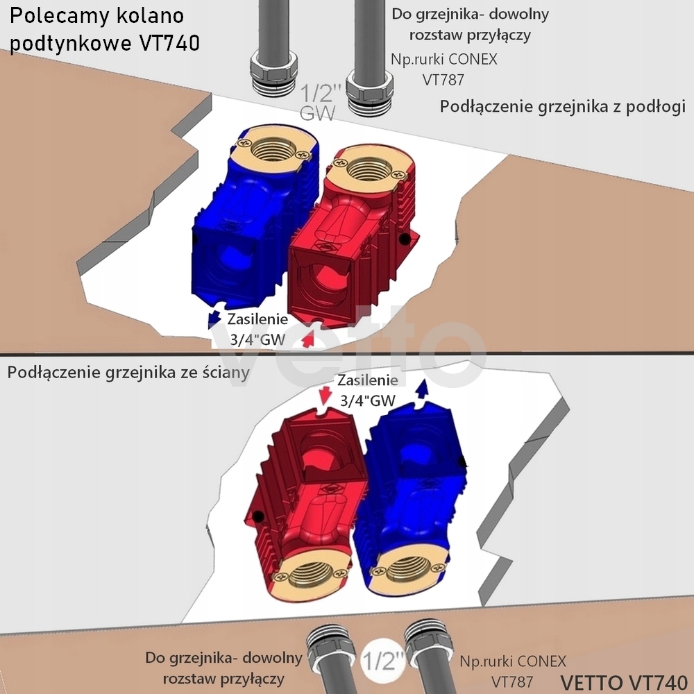 Пека PEX закінчена на лікті, до якого ми накручуємо трубку Conex. Інша сторона трубки підключена до клапана за допомогою затискаючих з'єднань, прикріплених до клапана. Труба виготовлена з міді і її можна легко скоротити до потрібної довжини за допомогою домашніх інструментів.