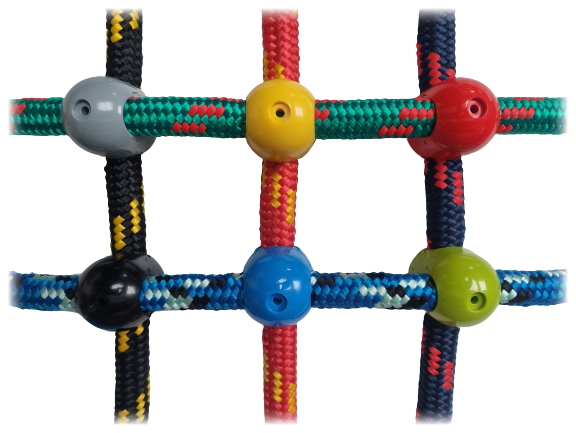 - , адаптованого для побудови сітків або пірамід з мотузками. Ігри. Таким чином, ви можете вільно використовувати його для своїх проектів для домашнього майданчика для своєї дитини. Застосовуйте там, де перетинаються мотузки. Створіть власну сітку для сходження. Розробіть власні відстані між мотузками та вільно вибирайте кольори.