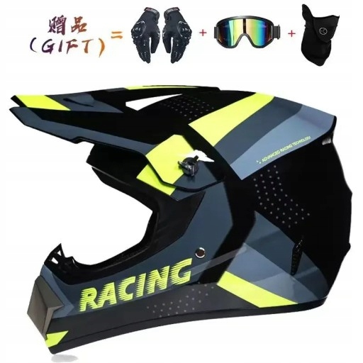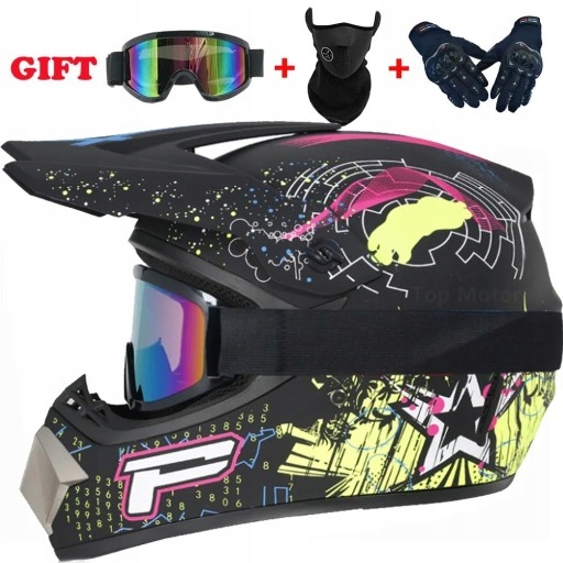 Перехресний шолом на перехресному мотоциклі ендуро монстр + рукавички + окуляри встановлені