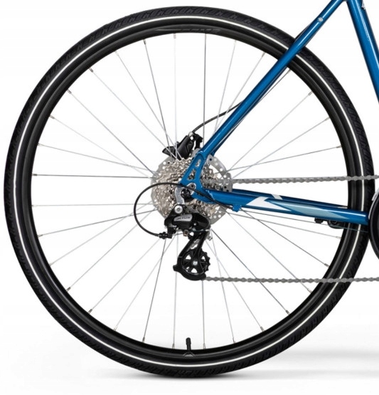 Сильний алюмінієвий швидкісний кадр із зручною геометрією; внутрішні вказівки; SR Suntour Nex Coil 63 мм амортизатор; Shimano FD-TY710 Derailleur (Tourney) та Shimano RD-M310 (Altus), Shimano Korba 48-38-28, 8-Row Sunrace 11-32 касета; Shimano ST-EF505 Гідравлічні дискові гальма; 700c колеса з шинами Kenda для швидкого та зручного водіння; Колеса мериди, регульований міст та подушник з сидіння; Можливість прикріплення крил, багажника та стопи
