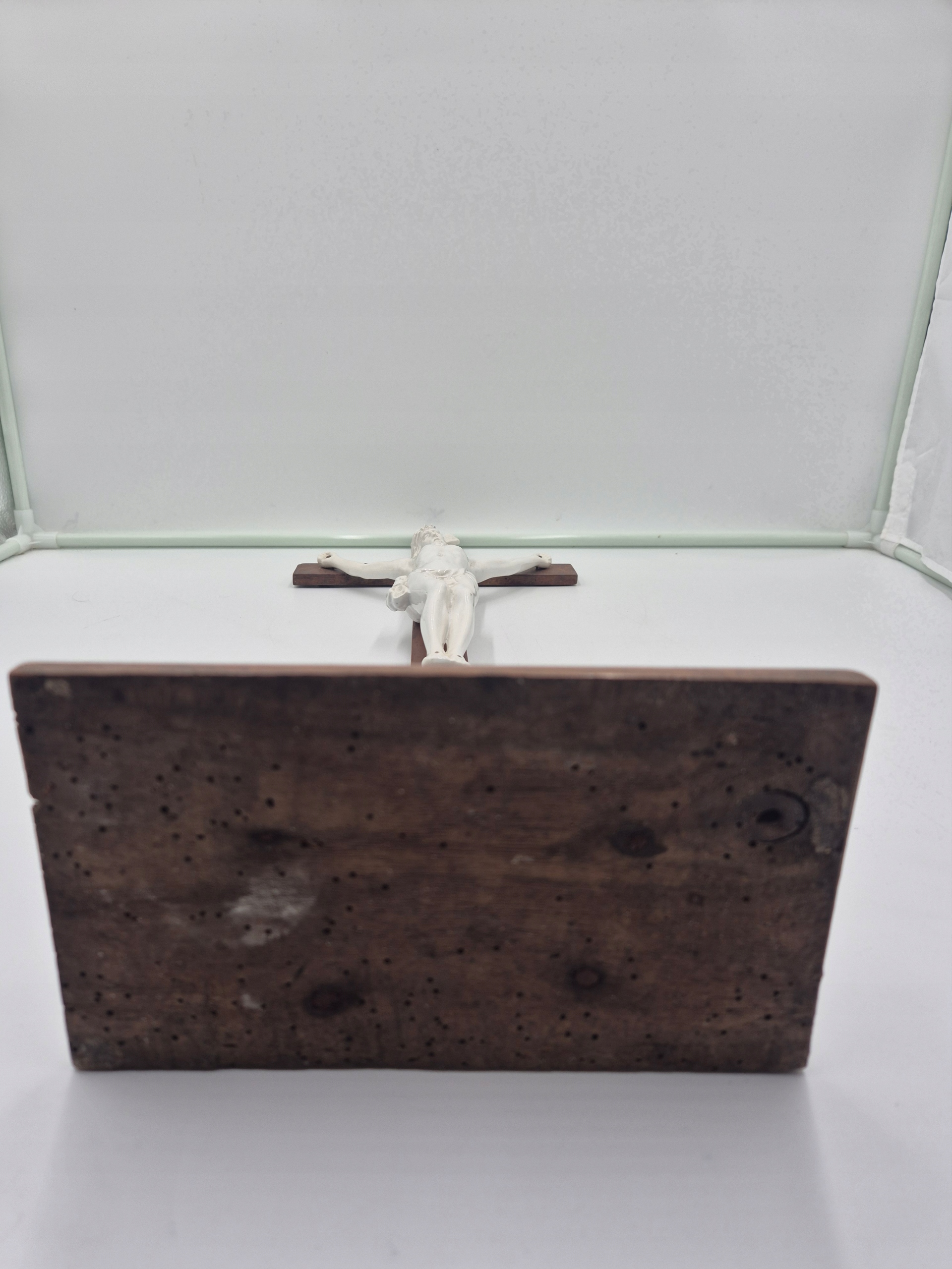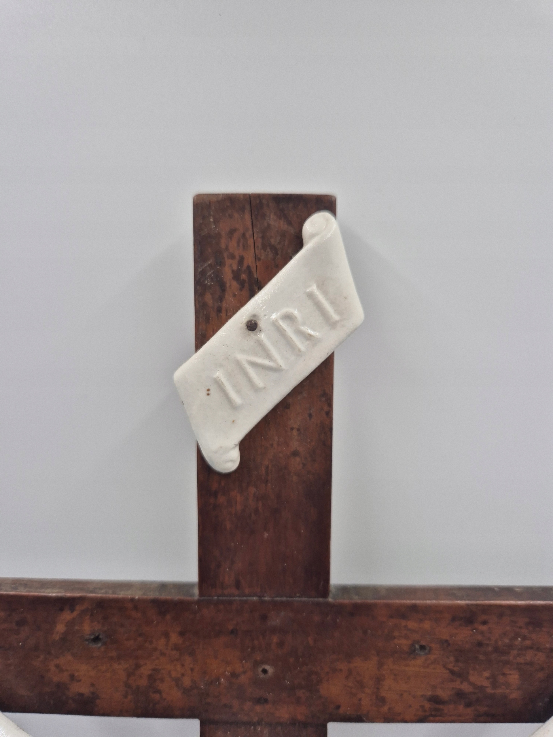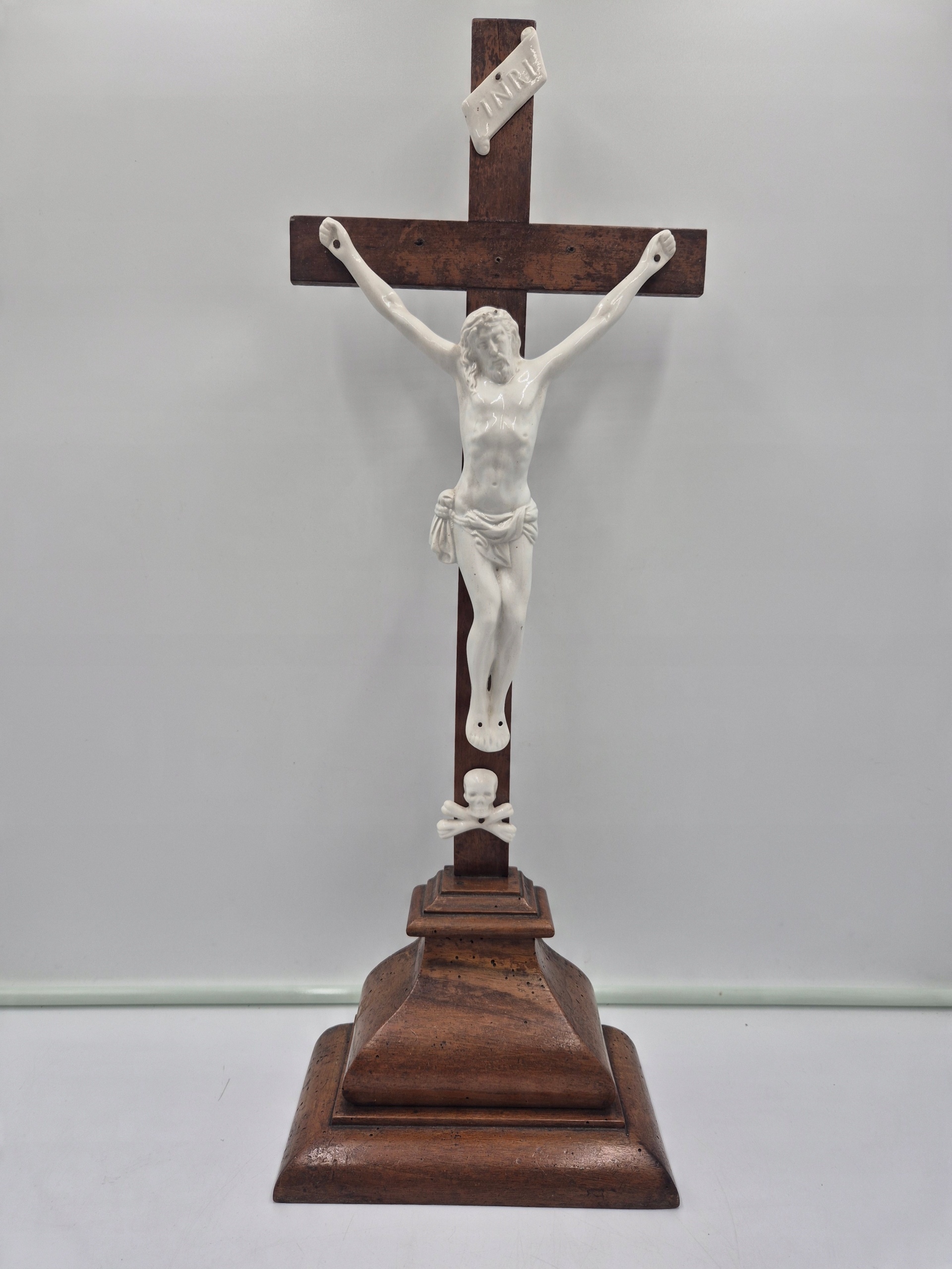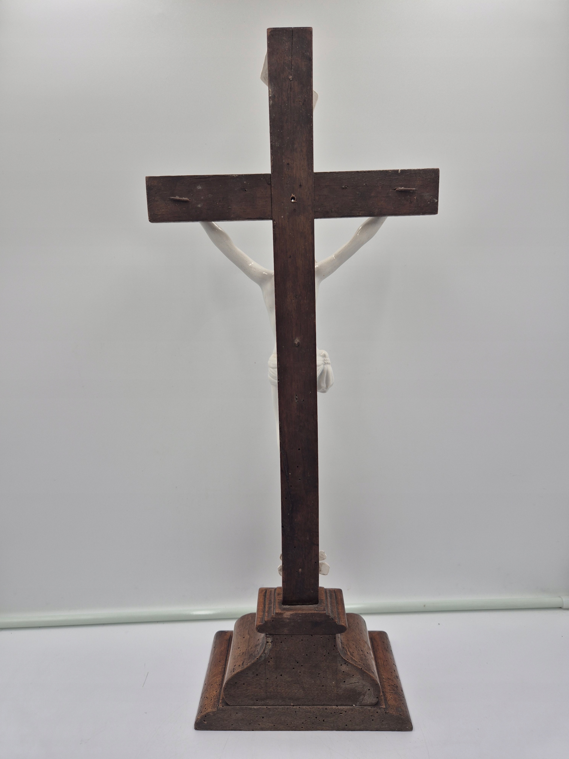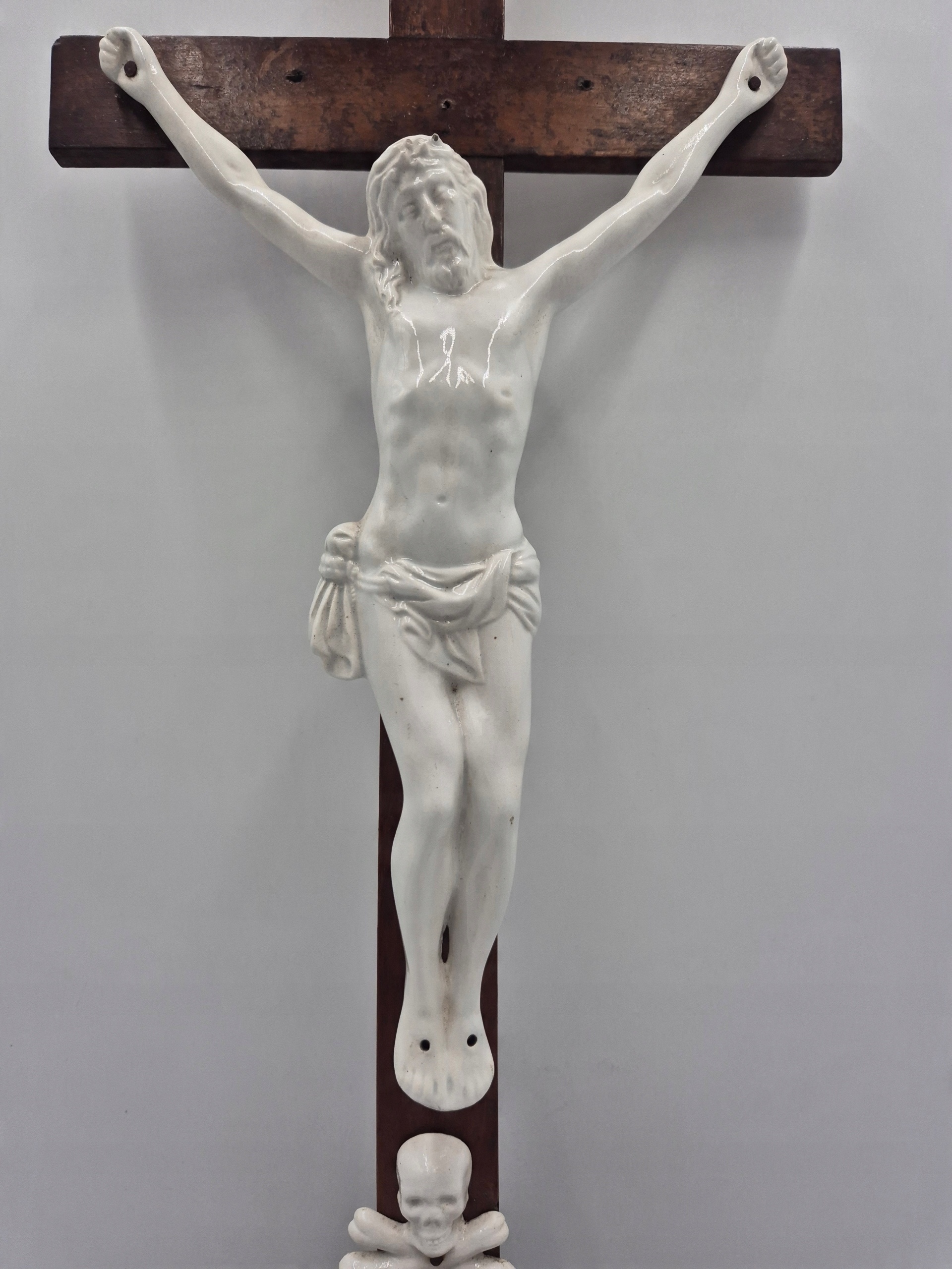 Розп'яття, зроблений з дерева, статуетки Господа Ісуса, зробленого з білого порцеляни.