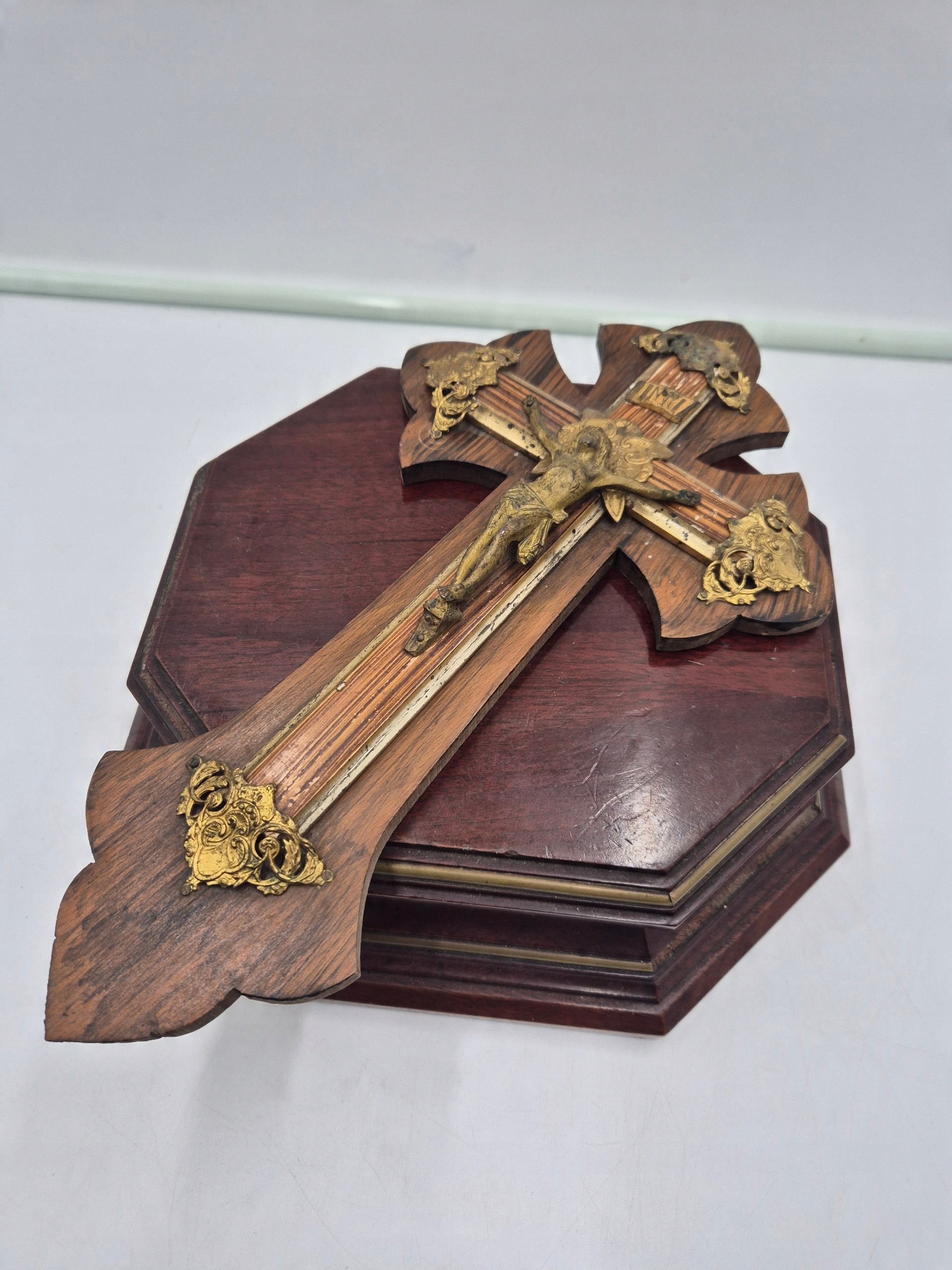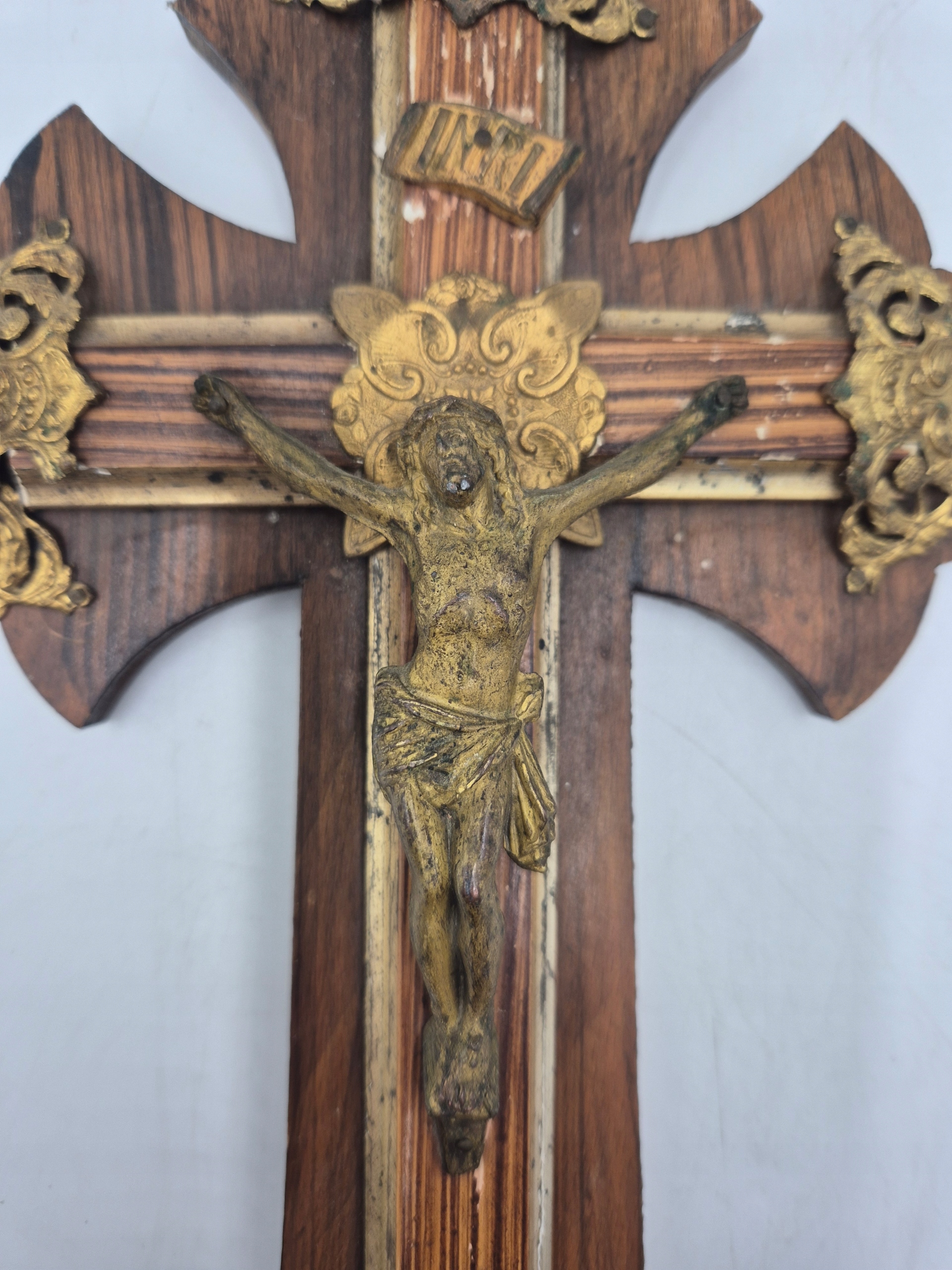 Перехрести Ісуса Розп'яту Латуна Франція Антик