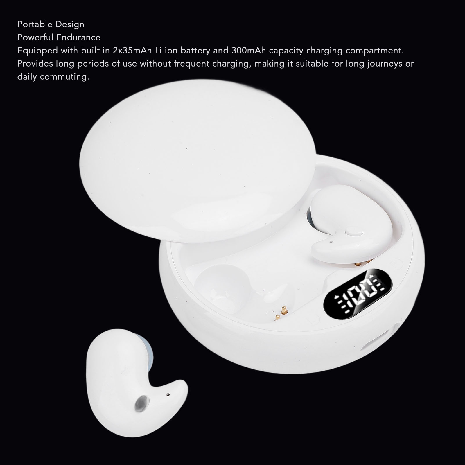 4. Портативна конструкція: Розроблена для зручності, ці легкі навушники інтелектуального голосового перекладача оснащені батареями LI 2x35mAh та корпусом зарядки 300 мАг, забезпечуючи більш тривалий використання без частого зарядки. Підходить для тривалих поїздок або щоденних маршрутів, переконайтеся, що ви залишаєтесь керованою цілою мандрівкою.