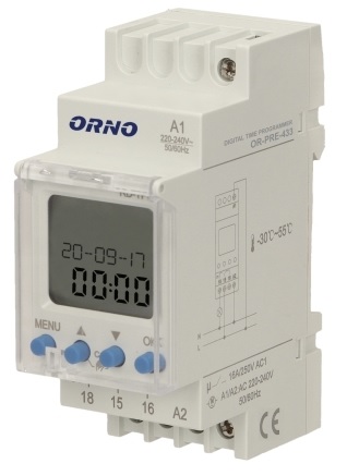 Програматор з РК-дисплеєм, призначений для встановлення на стандартну DIN-рейку. Використовується для встановлення часу вмикання та вимикання електричних пристроїв, таких як: освітлення, водонагрівачі, двигуни, насоси тощо. Прилад має: