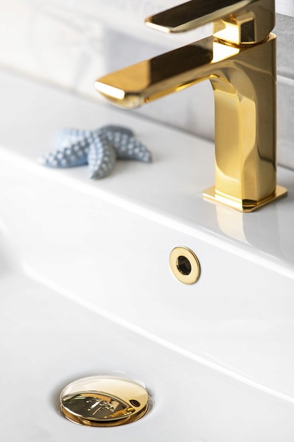 Розетка – декоративне кільце, що маскує перелив умивальника золотом. Якщо розетка в переливі занадто вільна, ви можете використовувати силікон, щоб закрити перелив і таким чином приклеїти решітку до раковини.