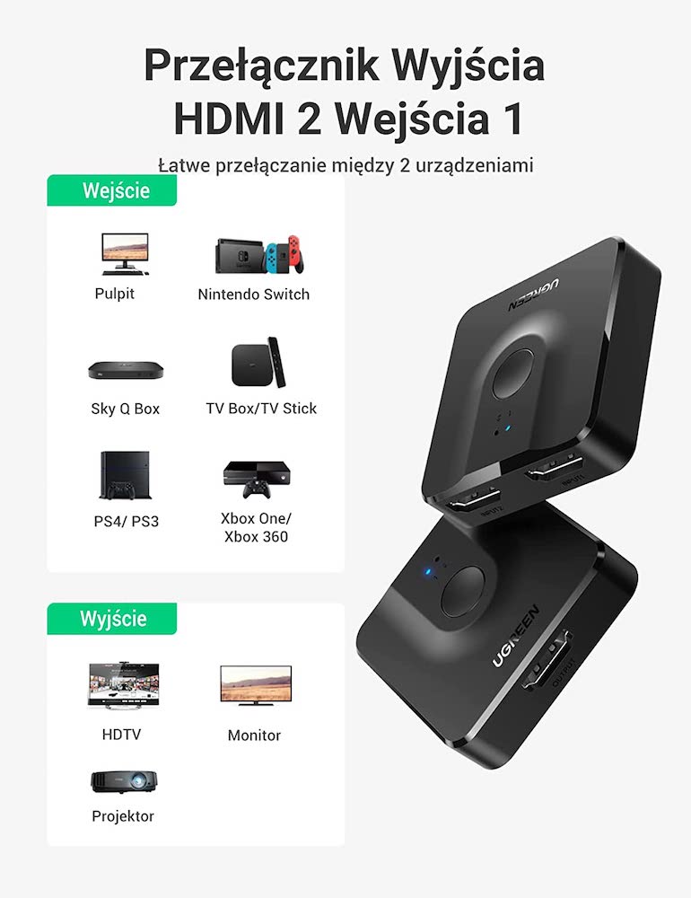 - Перемикач HDMI, 2 порти (2x1)