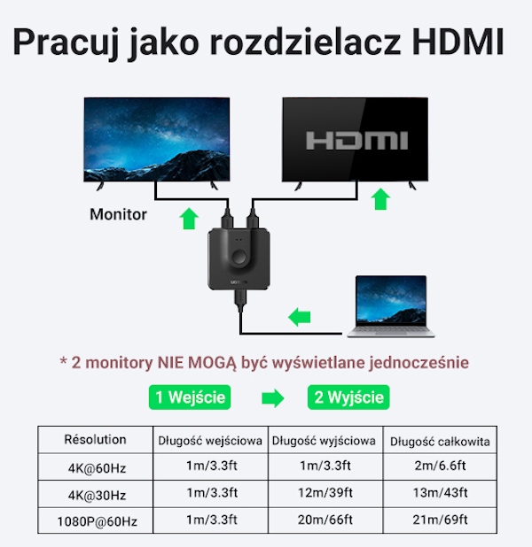 - 4K@60Hz (4K@60Hz, якщо кабель HDMI макс. 1м +1м)